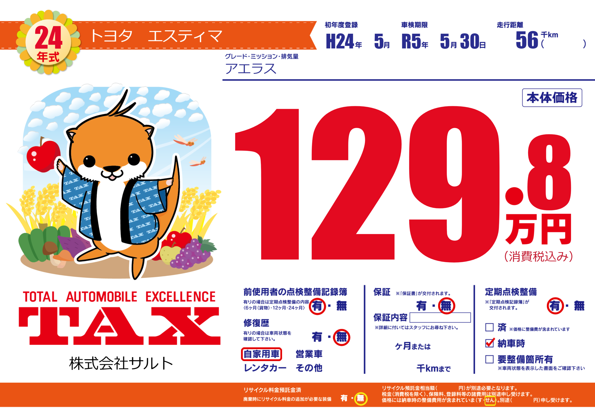 | 走行キロ | 5.6万km | 初年度登録 | H24年5月 |