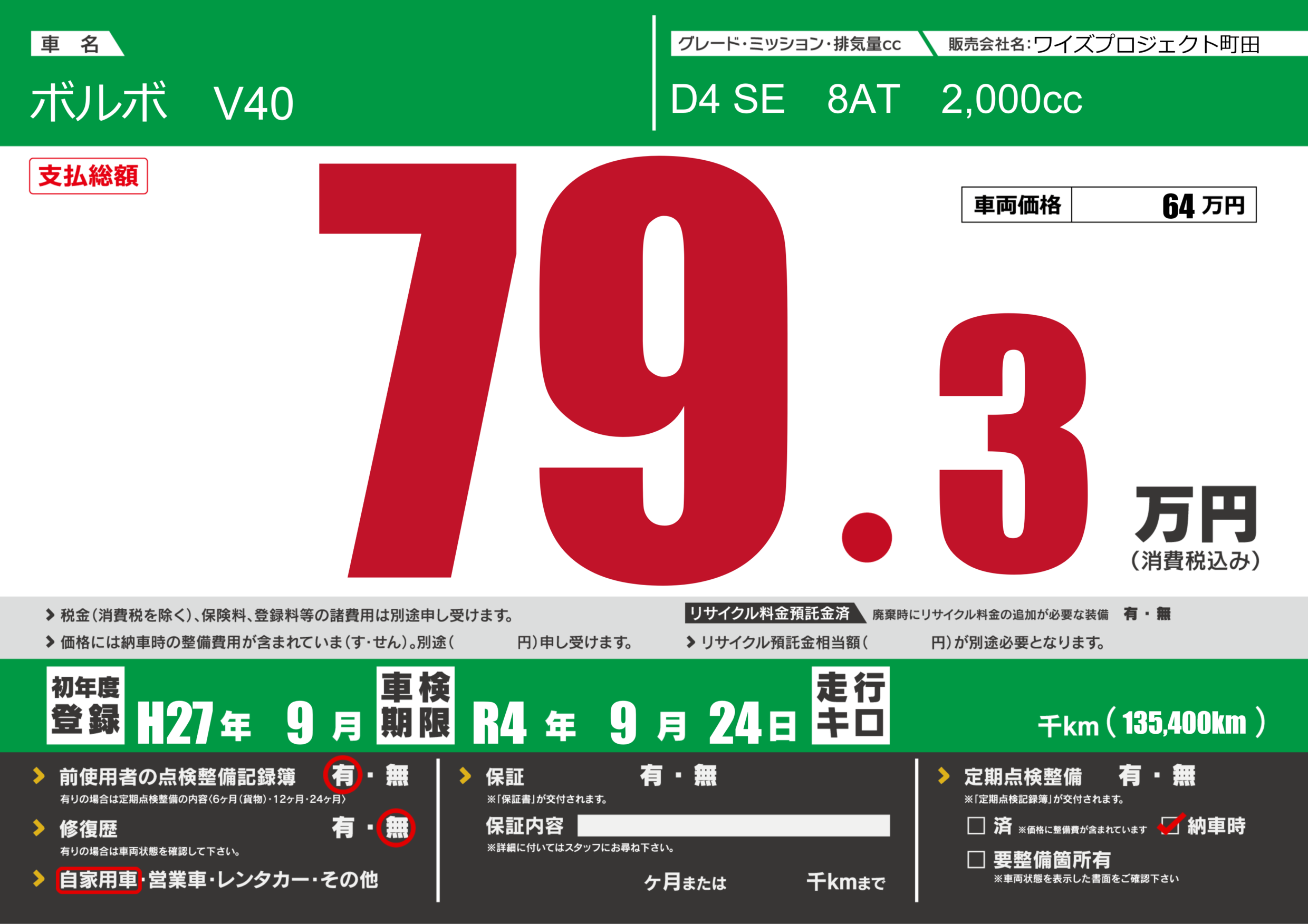 定期点検整備 | 納車時あり |