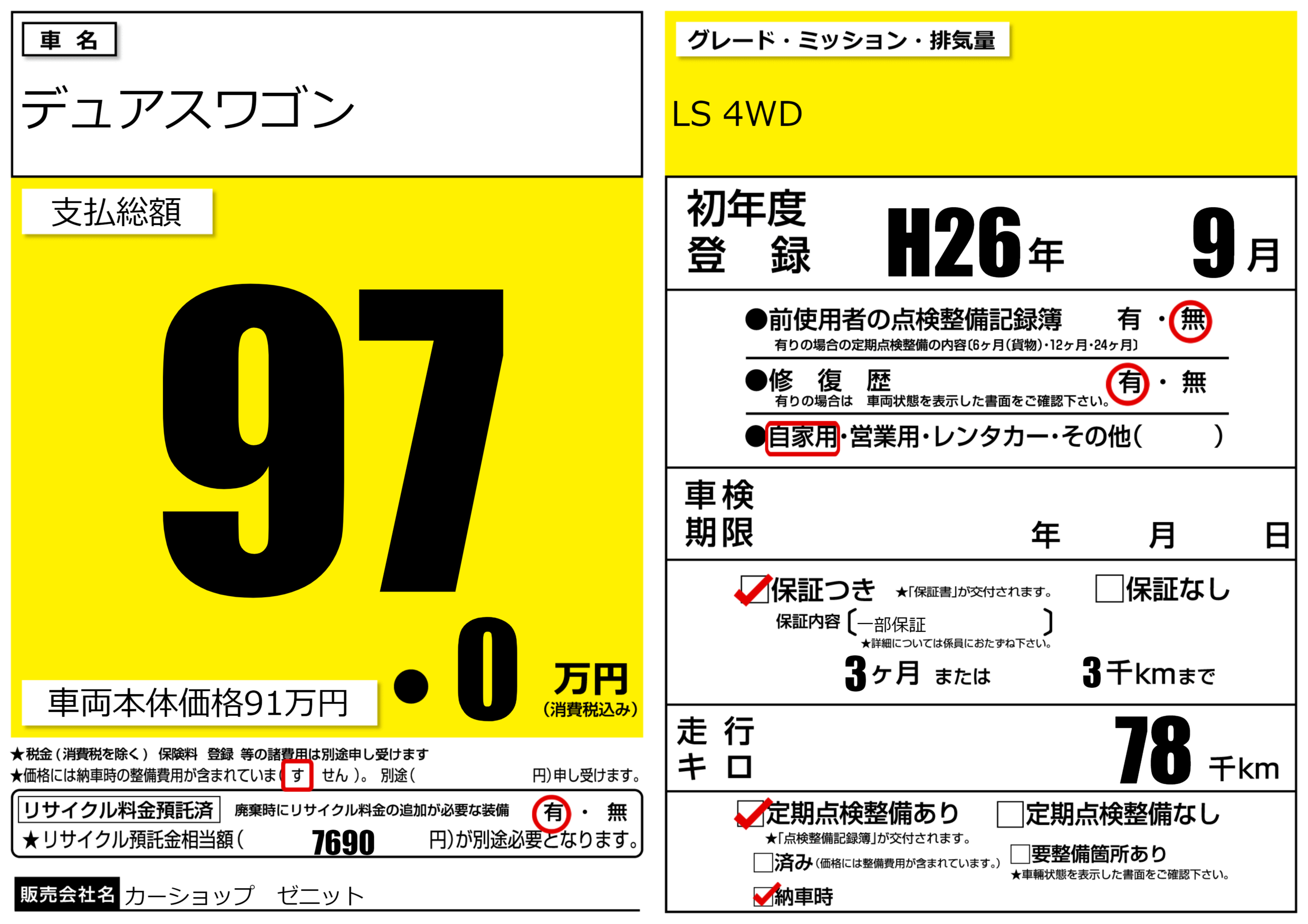 | 車名 | デュアスワゴン | グレード ミッション 排気量 |