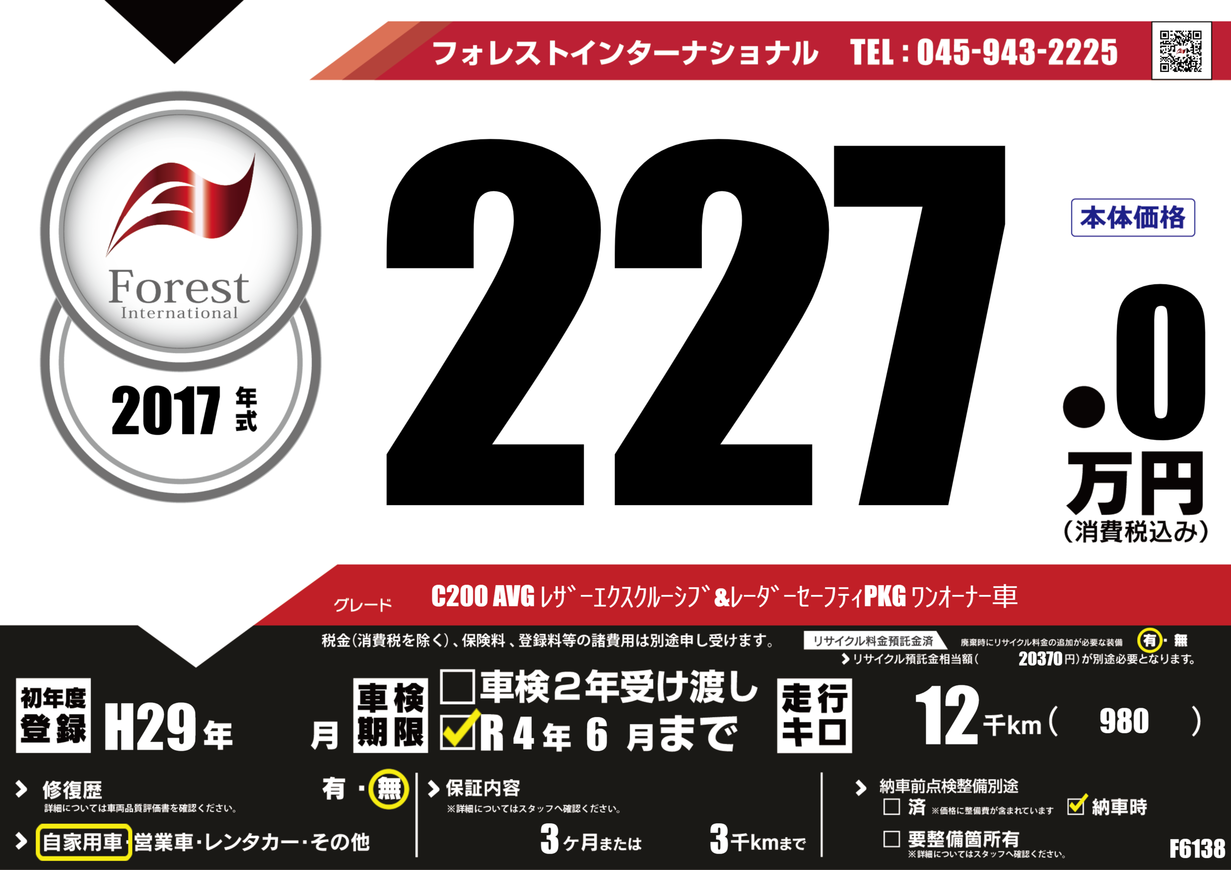 C200 AVG レザーエクスクルーシブ&レーダーセーフティPKG ワンオーナー車 |