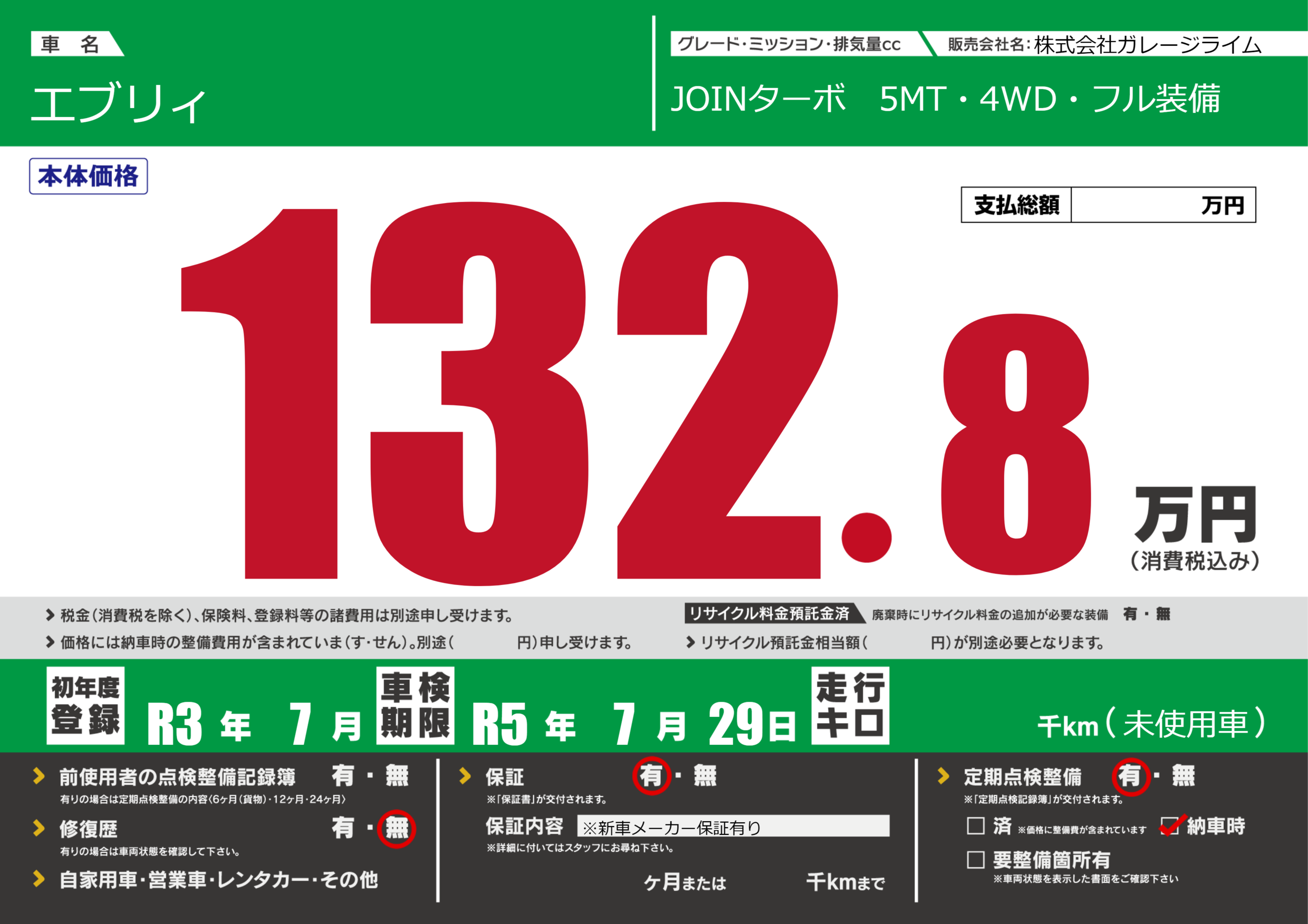 なし | 車検制限 | R5年7月29月 |