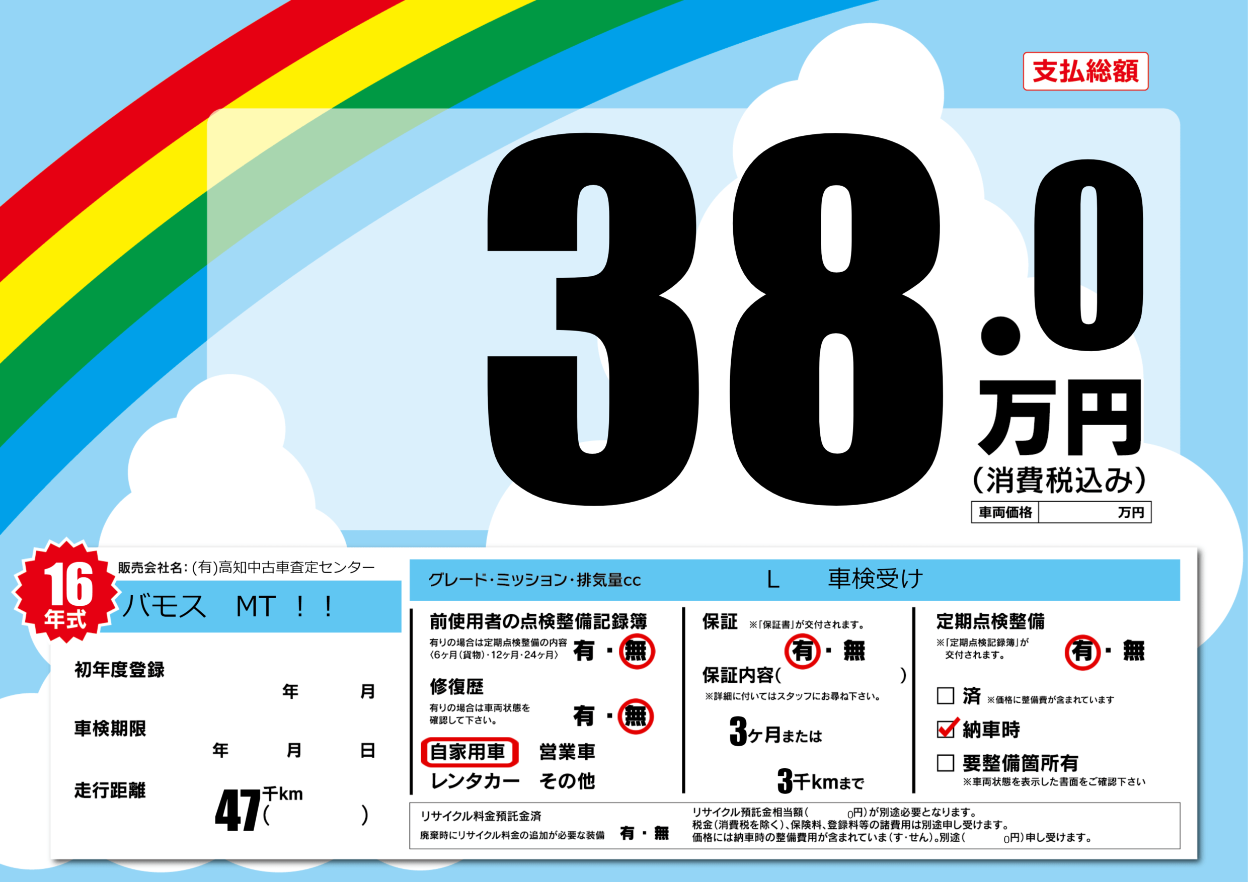 | 車名 | バモス MT !! | グレード ミッション 排気量 |