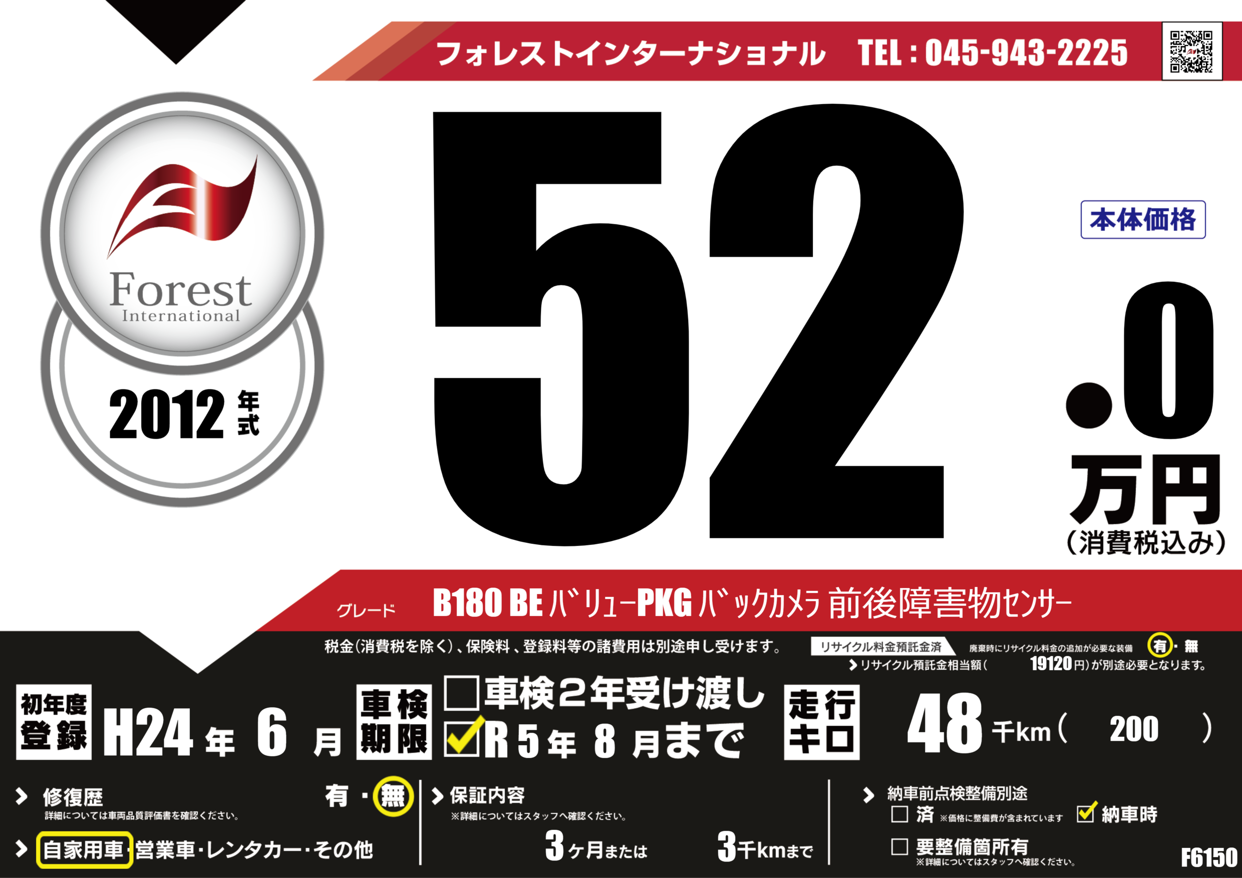 | 走行キロ | 4.8万km | 初年度登録 | H24年6月 |