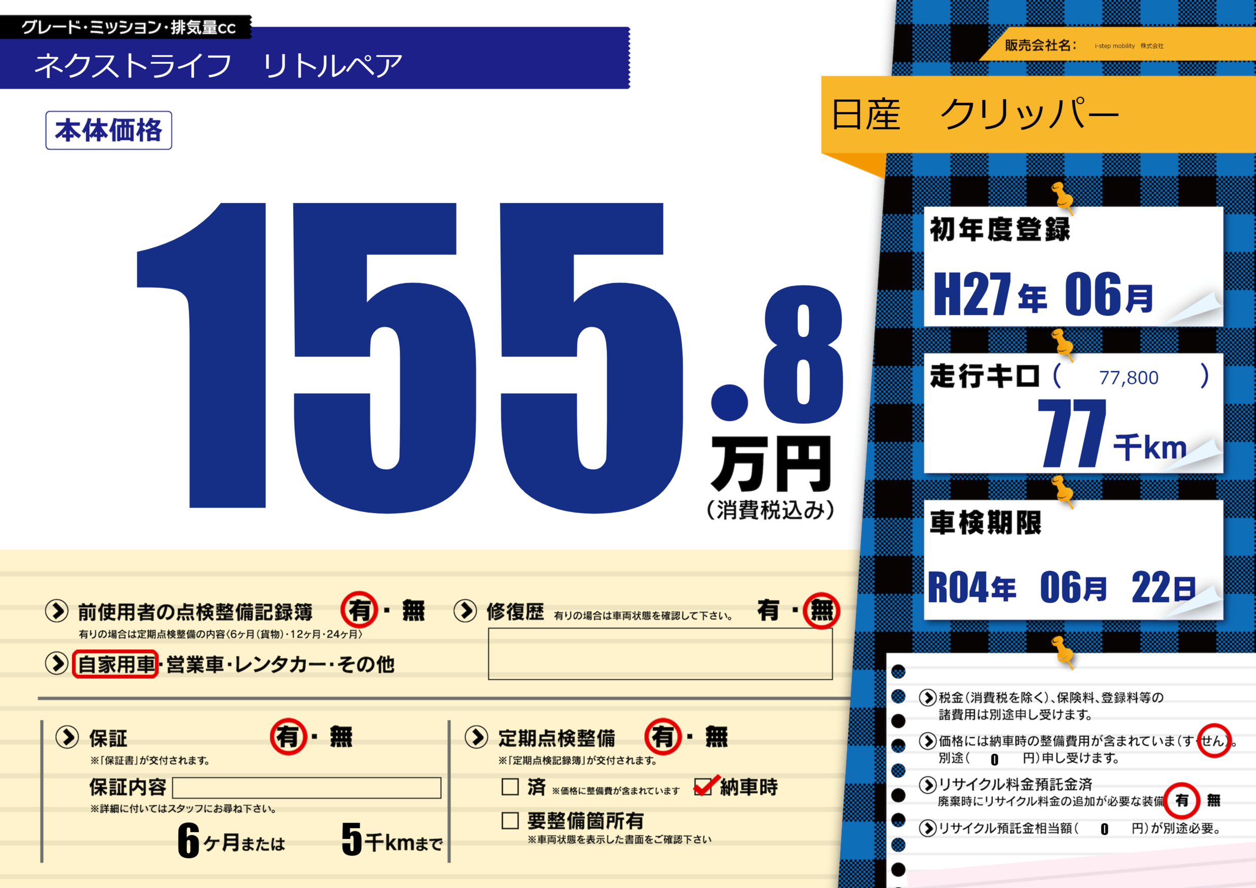 | 定期点検整備 | 定期点検整備あり 納車時あり | ||