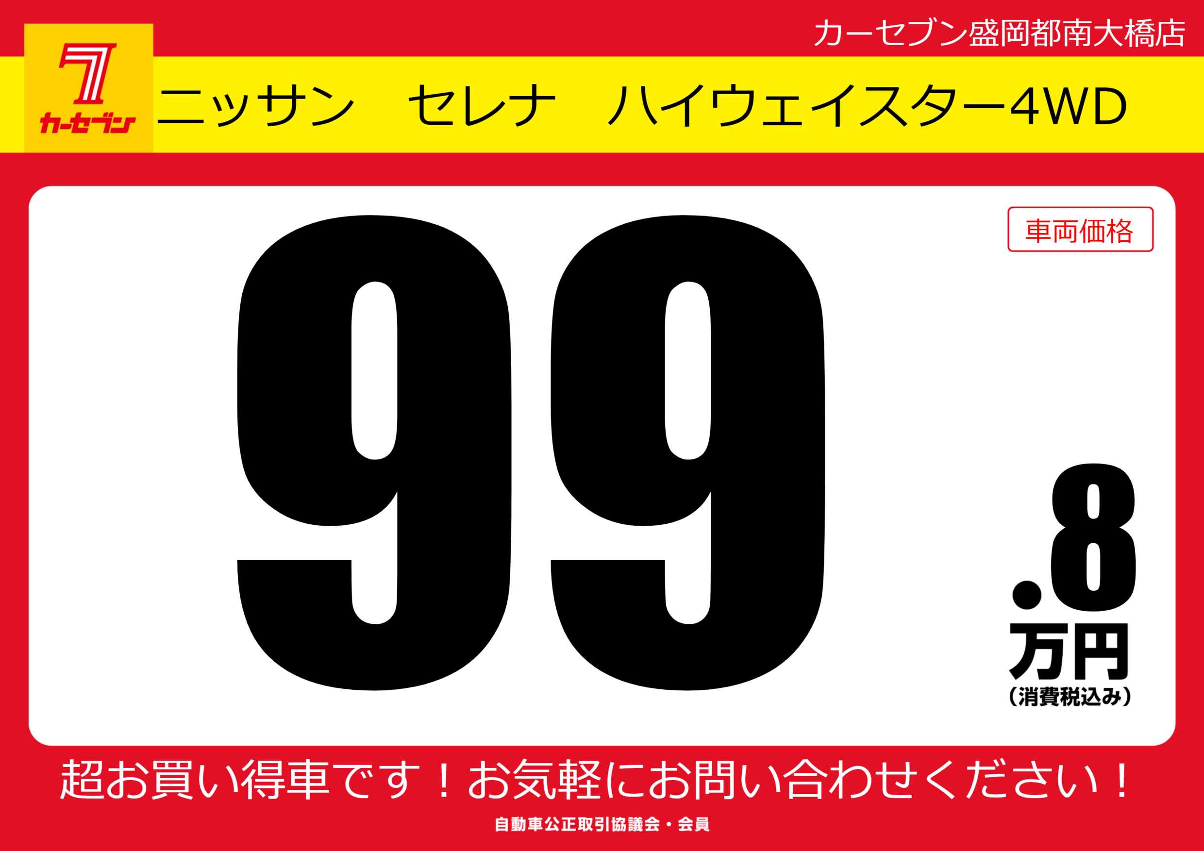 | 車名 | ニッサン セレナ ハイウェイスター4WD | グレード ミッション 排気量 |