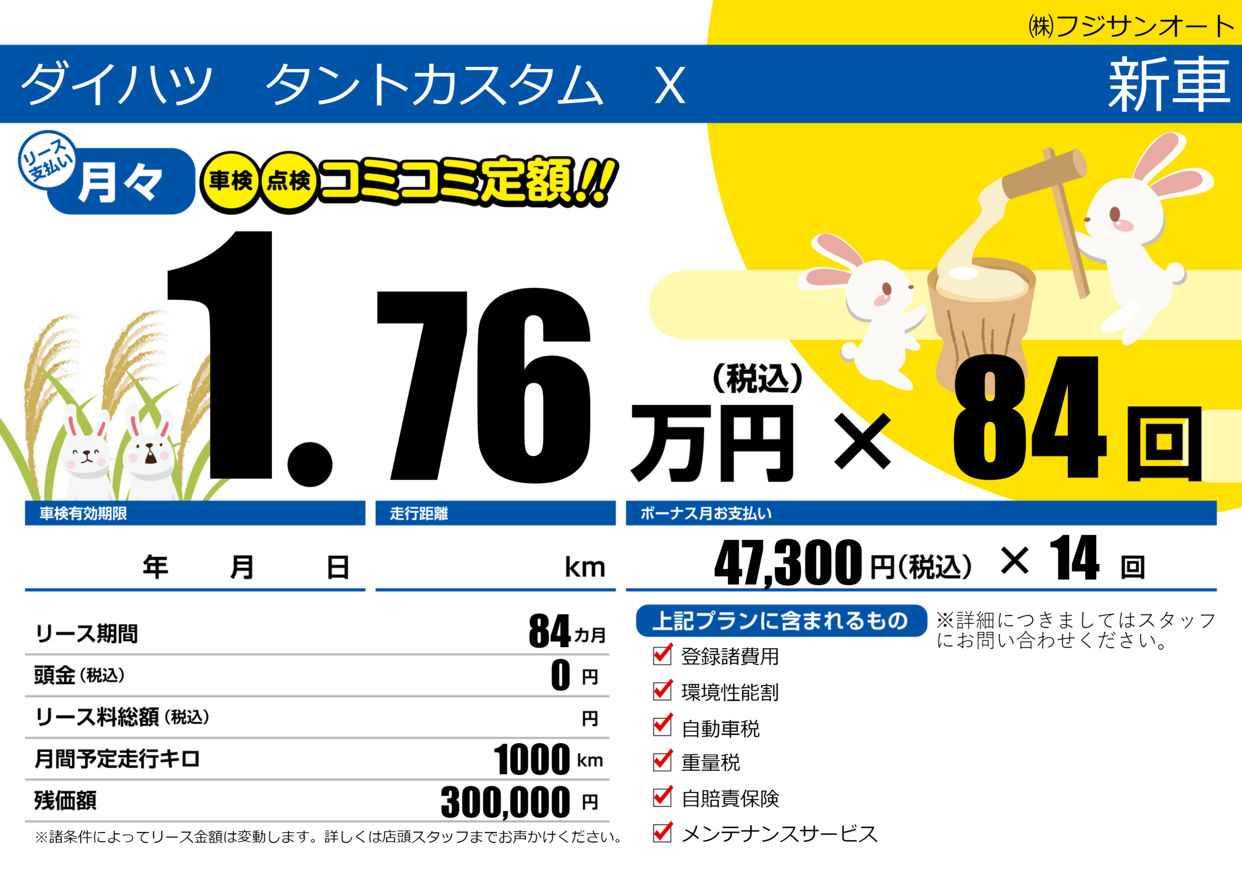 | 車名 | ダイハツ タントカスタム X | グレード ミッション 排気量 |