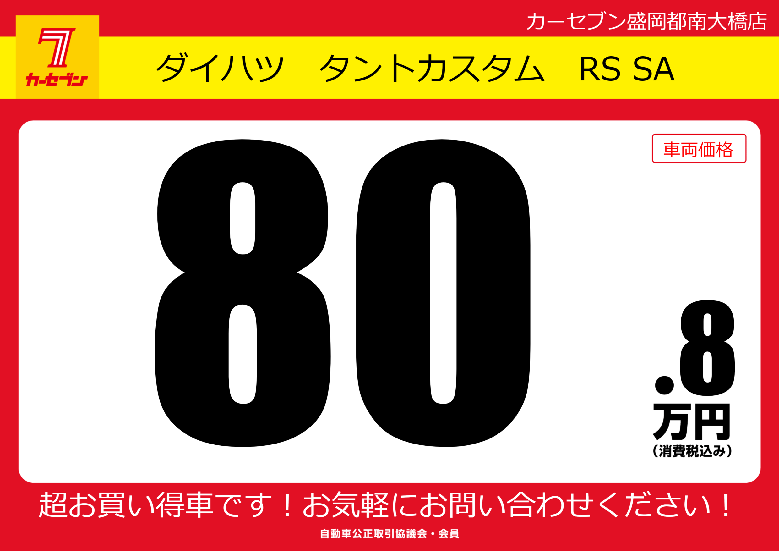 | 車名 | ダイハツ タントカスタム RS SA | グレード ミッション 排気量 |