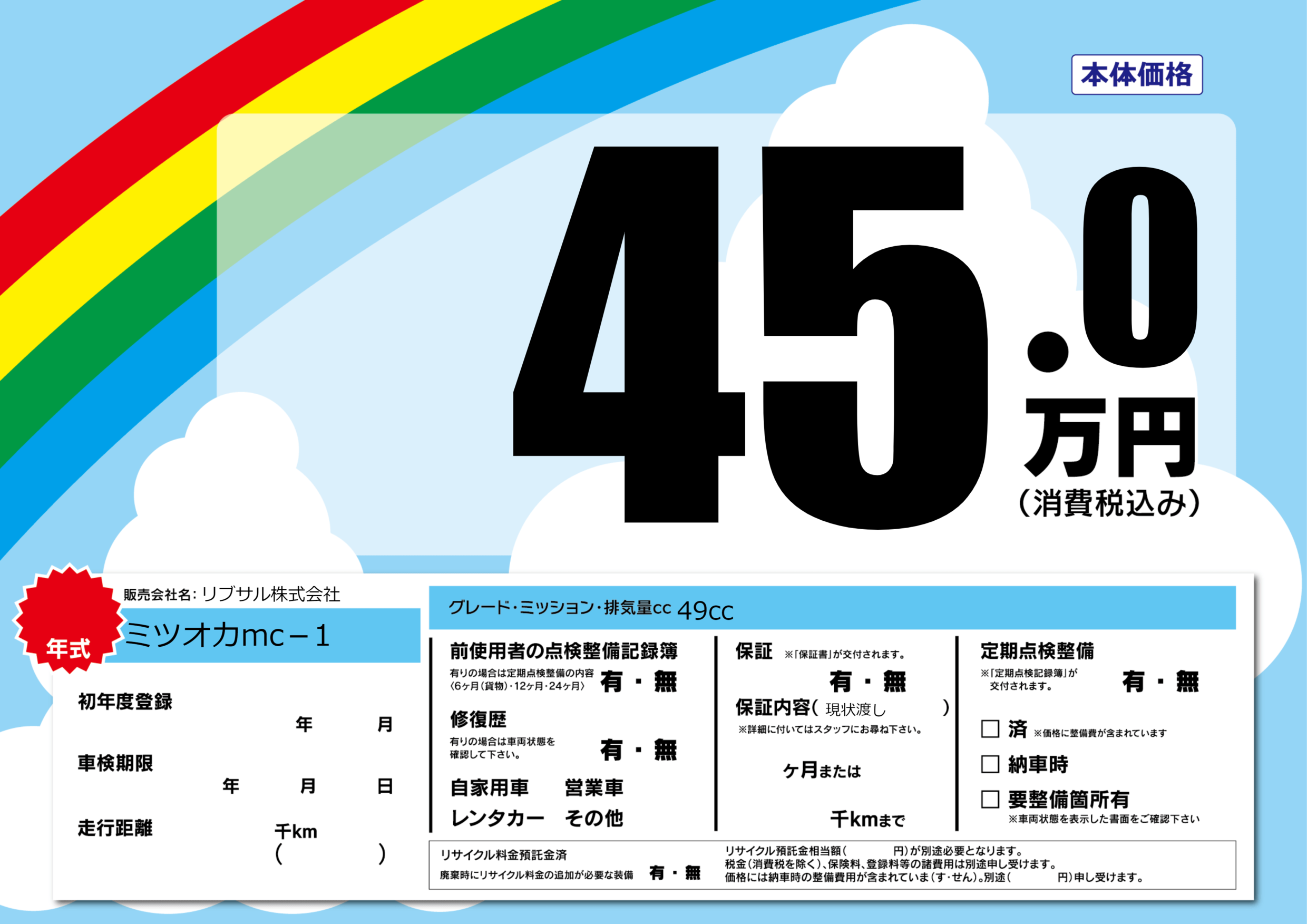 保証なし 保証内容( 現状渡し) ---ヶ月または()千kmまで |