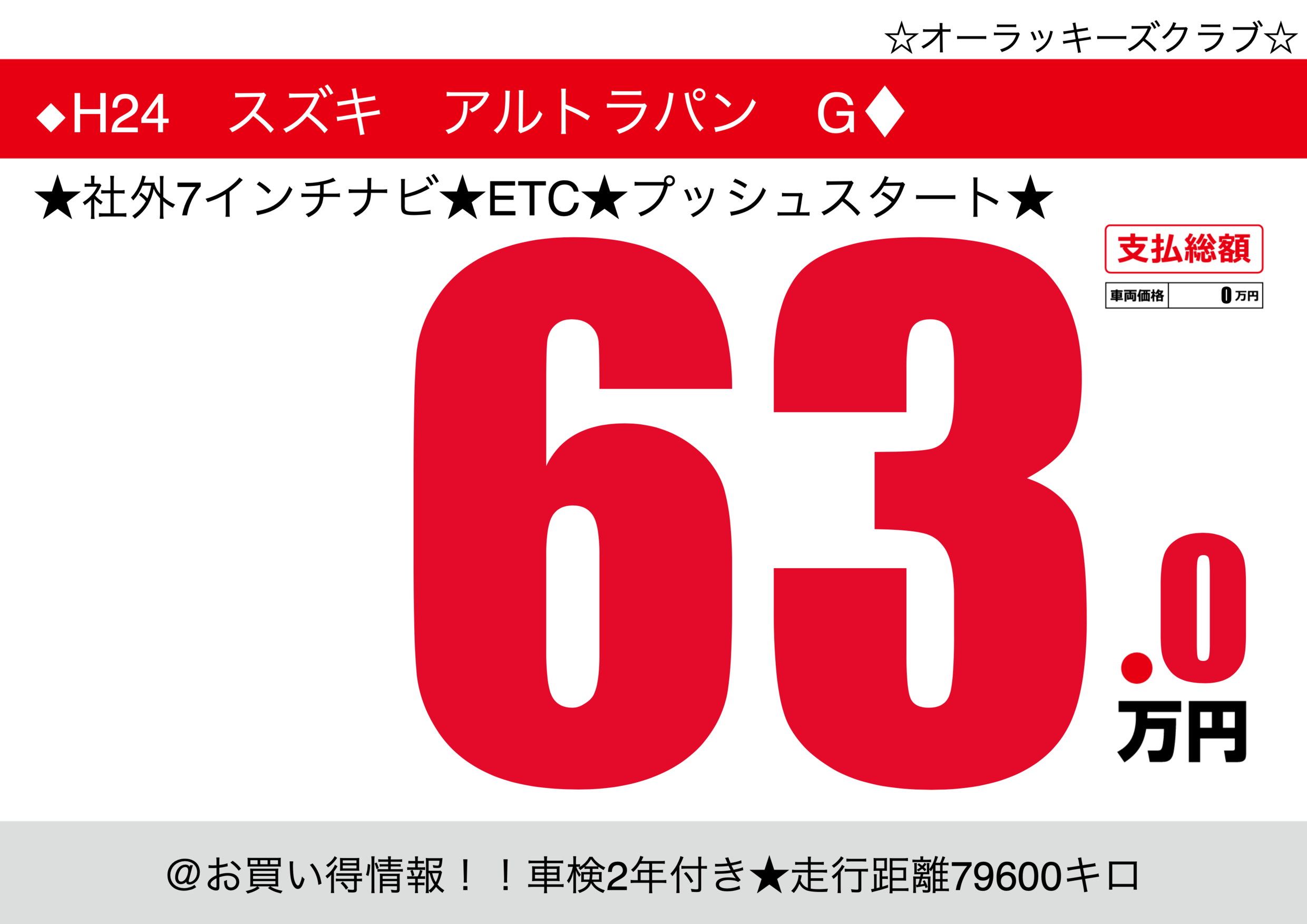 | 車名 | ◆H24 スズキ アルトラパン G♦ | グレード ミッション 排気量 |