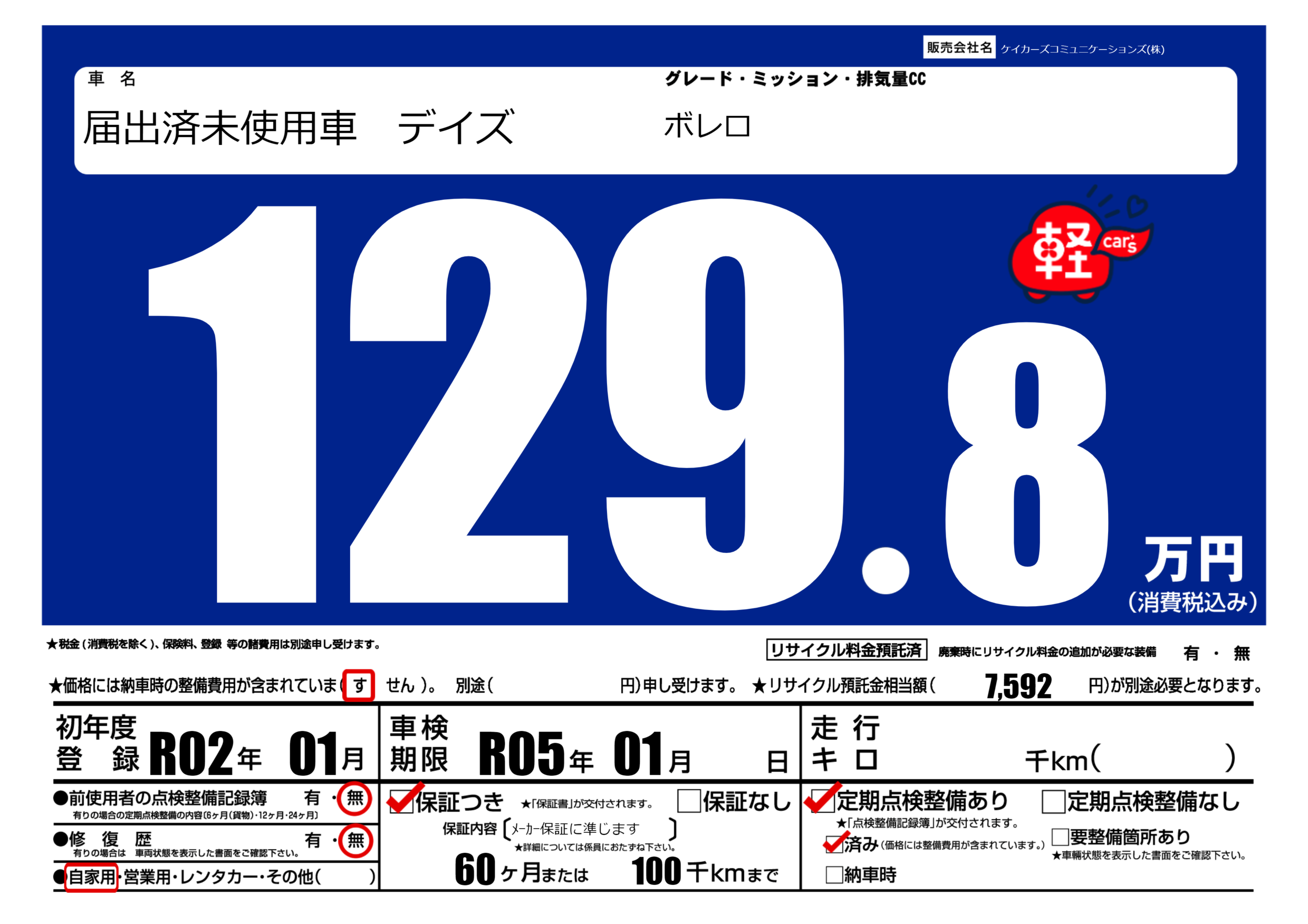 | 定期点検整備 | 定期点検整備あり 定期点検整備済み | ||