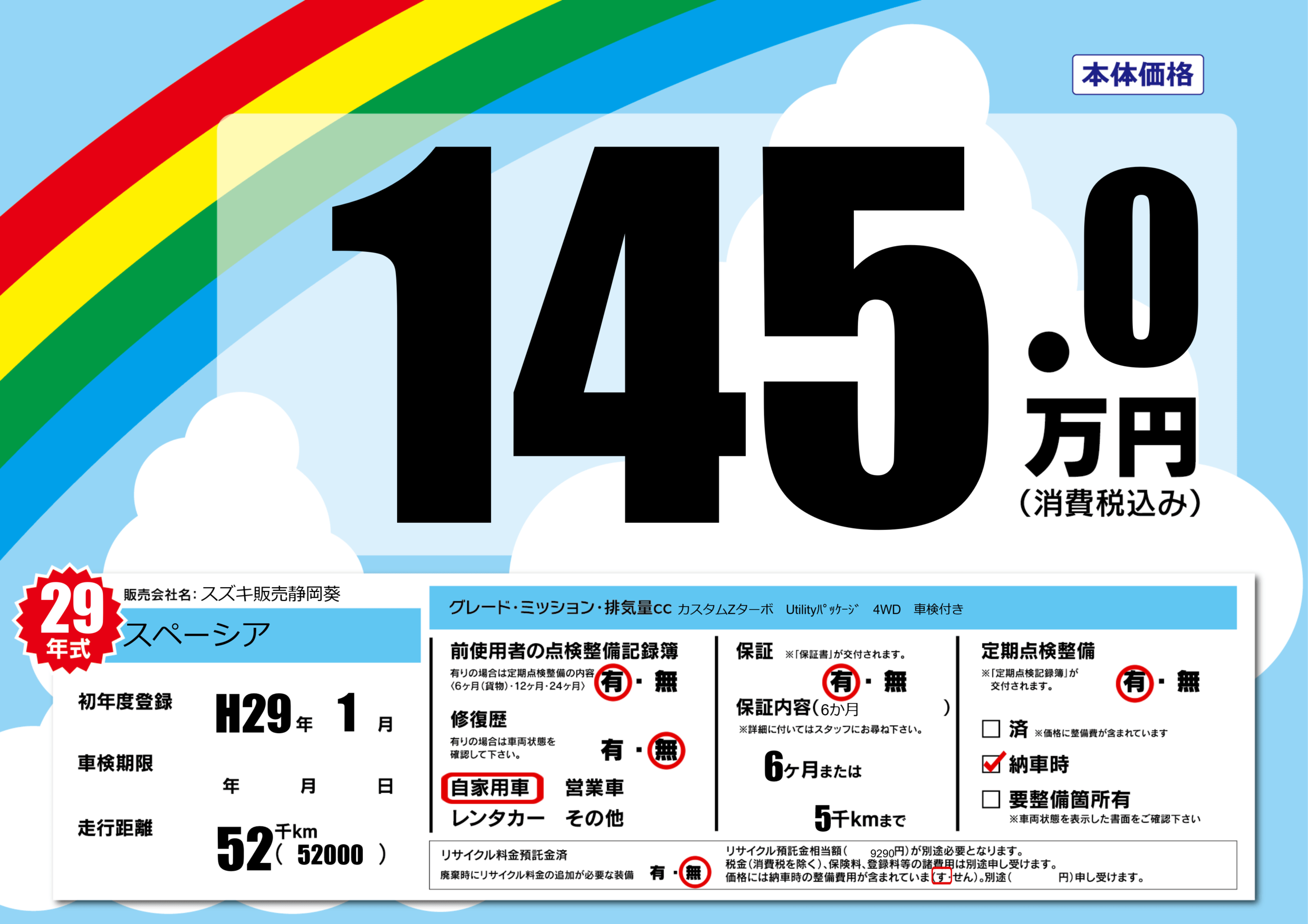 | 車名 | スペーシア | グレード ミッション 排気量 |