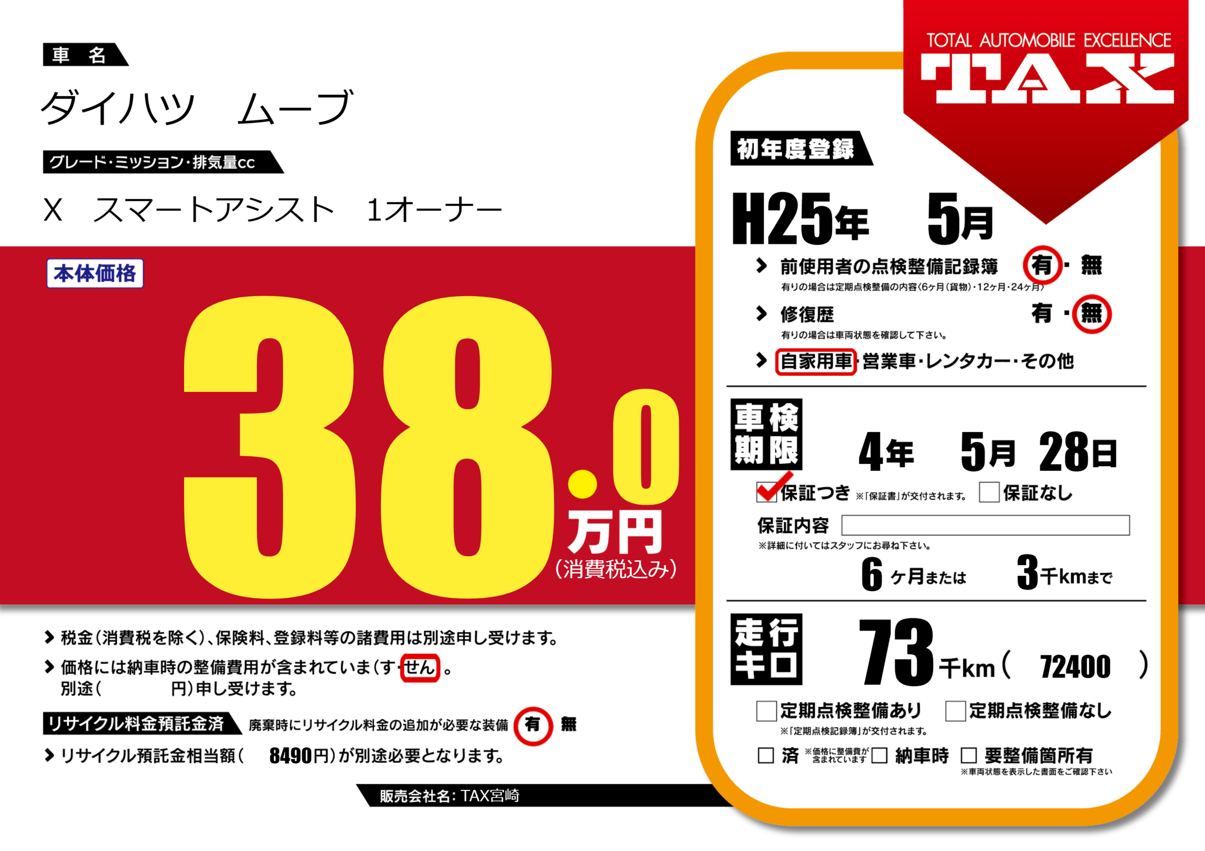 | 走行キロ | 7.3万km | 初年度登録 | H25年5月 |