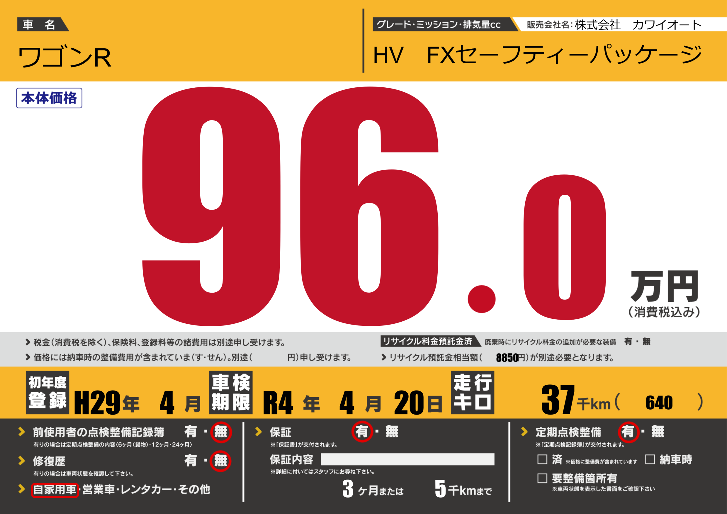 | 車名 | ワゴンR | グレード ミッション 排気量 |