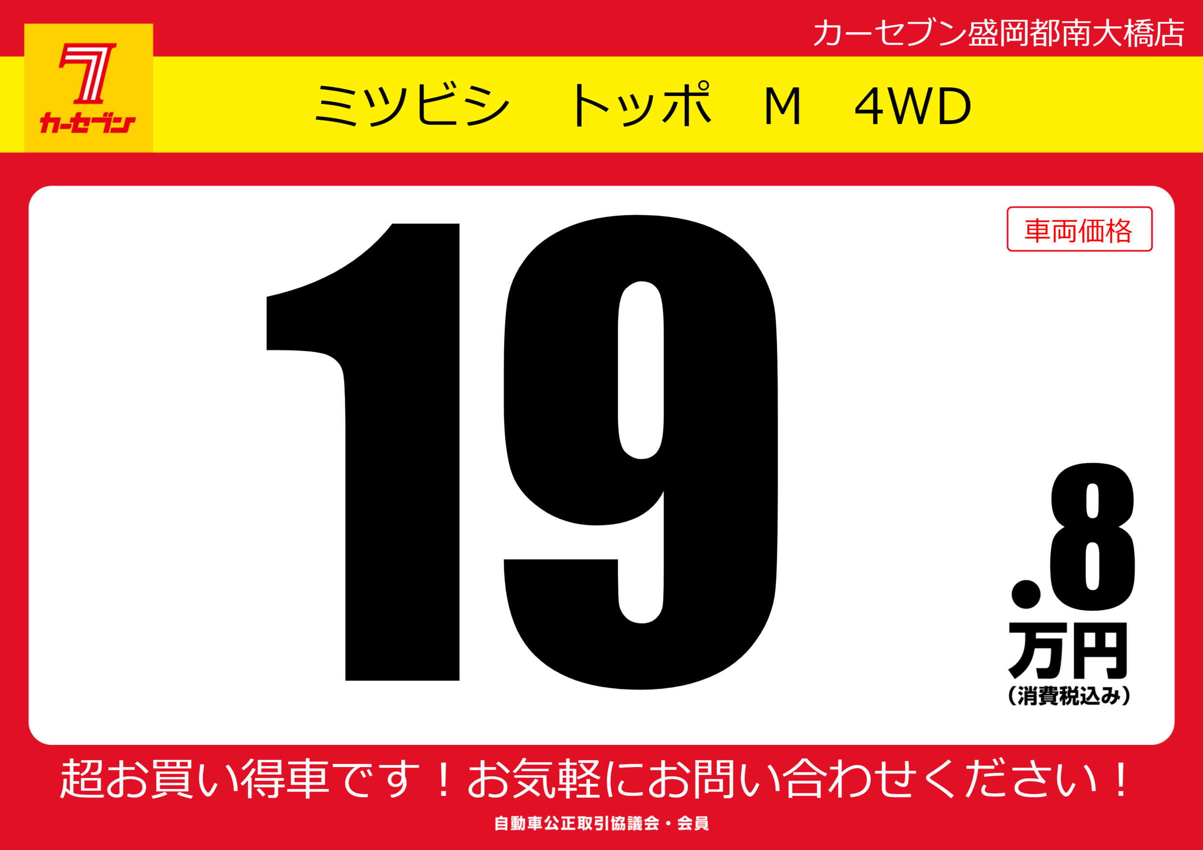 | 車名 | ミツビシ トッポ M 4WD | グレード ミッション 排気量 |