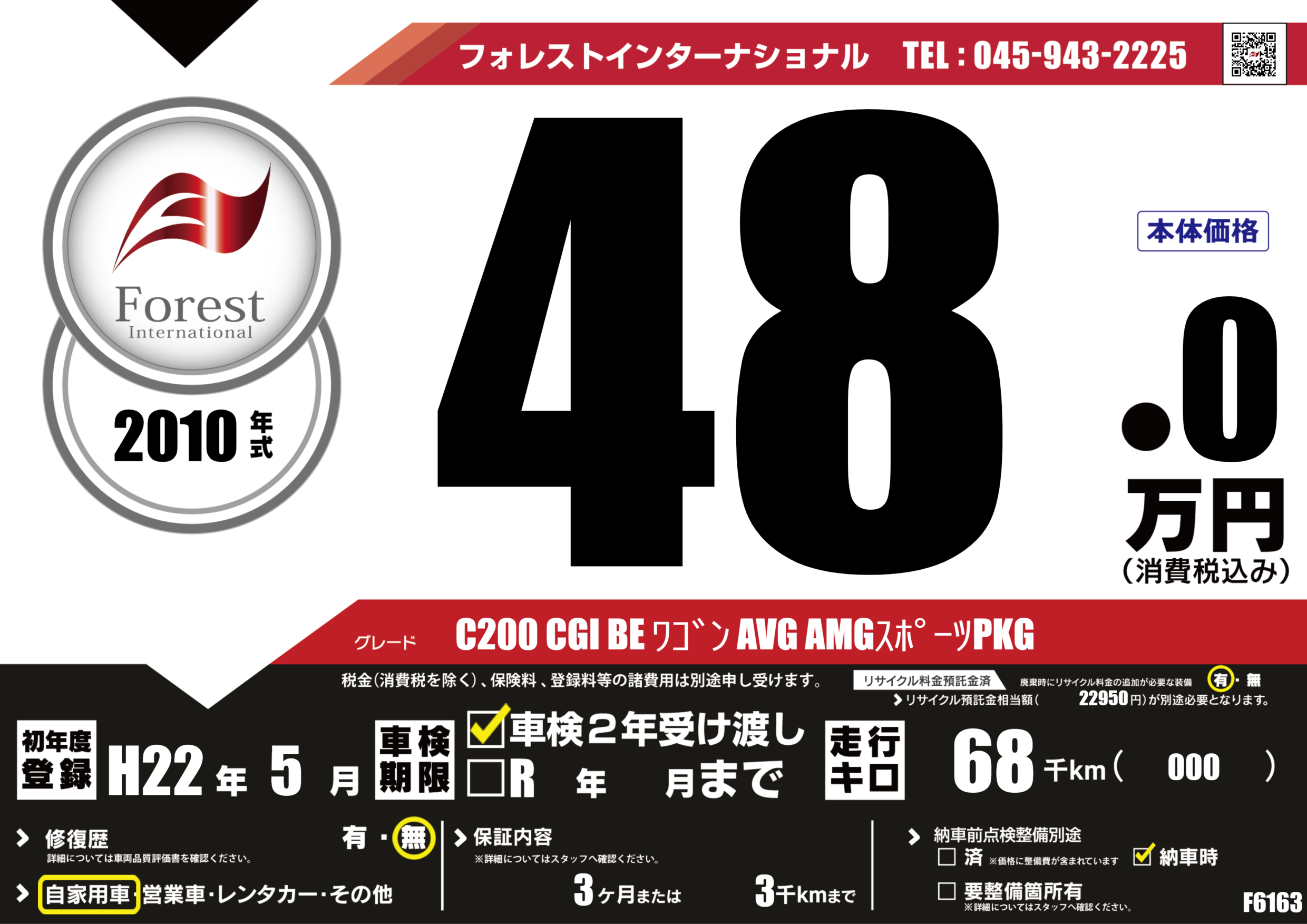 | 走行キロ | 6.8万km | 初年度登録 | H22年5月 |