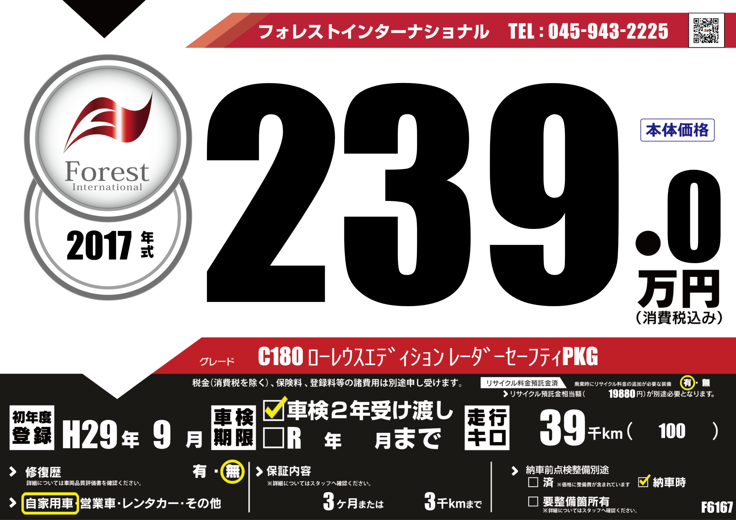 | 走行キロ | 3.9万km | 初年度登録 | H29年9月 |