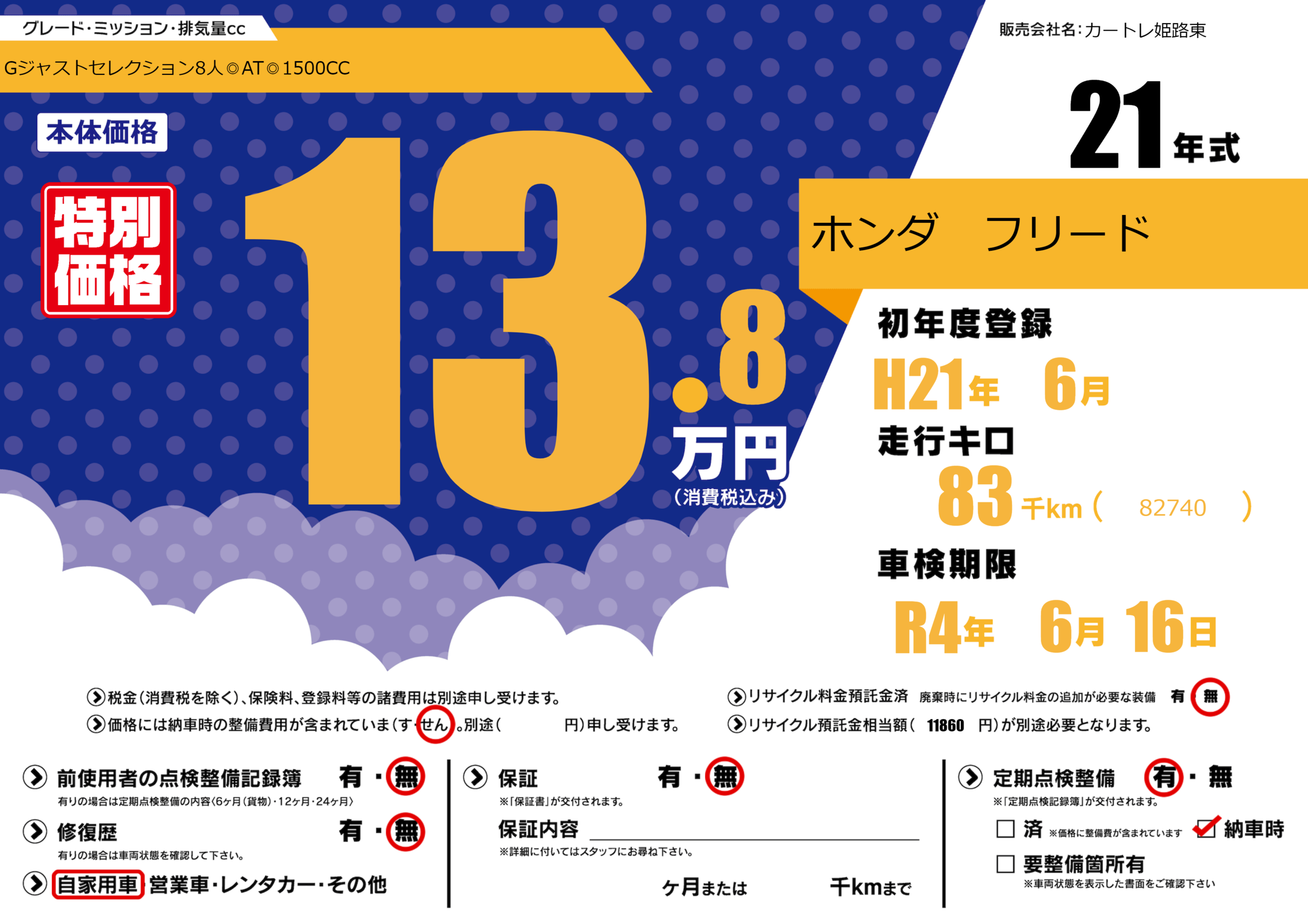 なし | 車検制限 | R4年6月16月 |