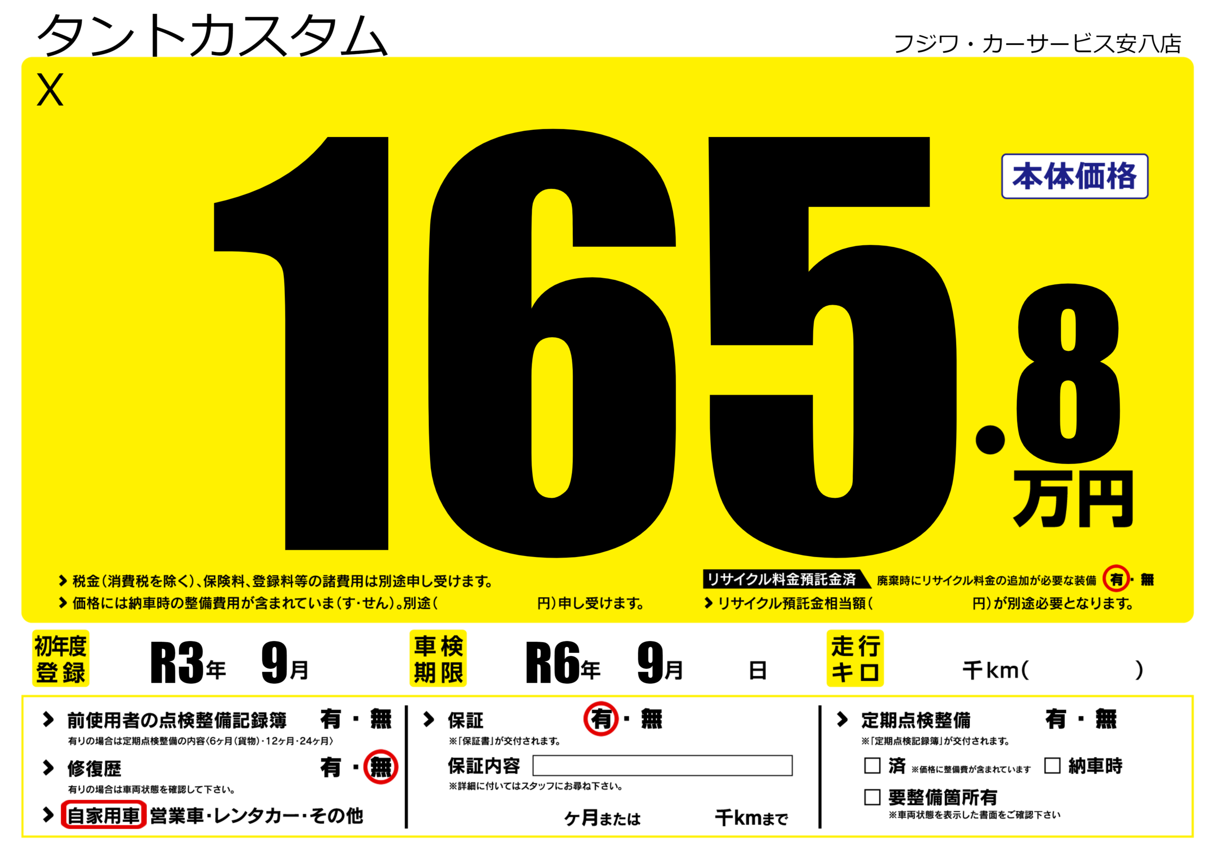 | 車名 | タントカスタム | グレード ミッション 排気量 |