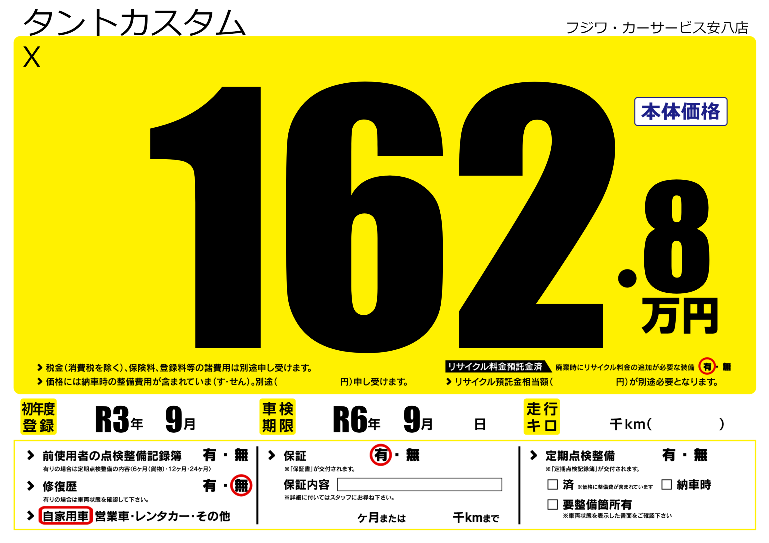 | 車名 | タントカスタム | グレード ミッション 排気量 |