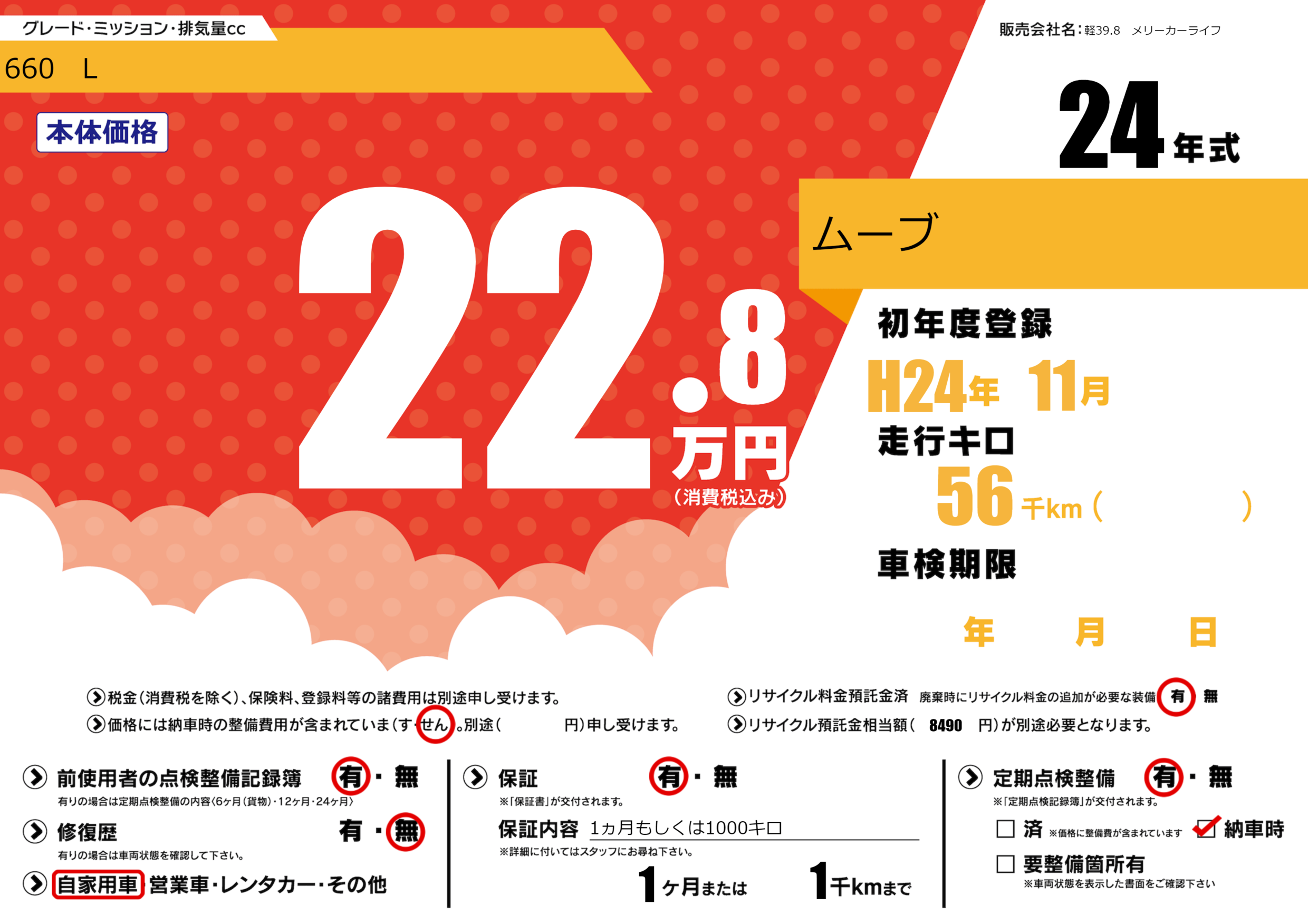 | 車名 | ムーブ | グレード ミッション 排気量 |