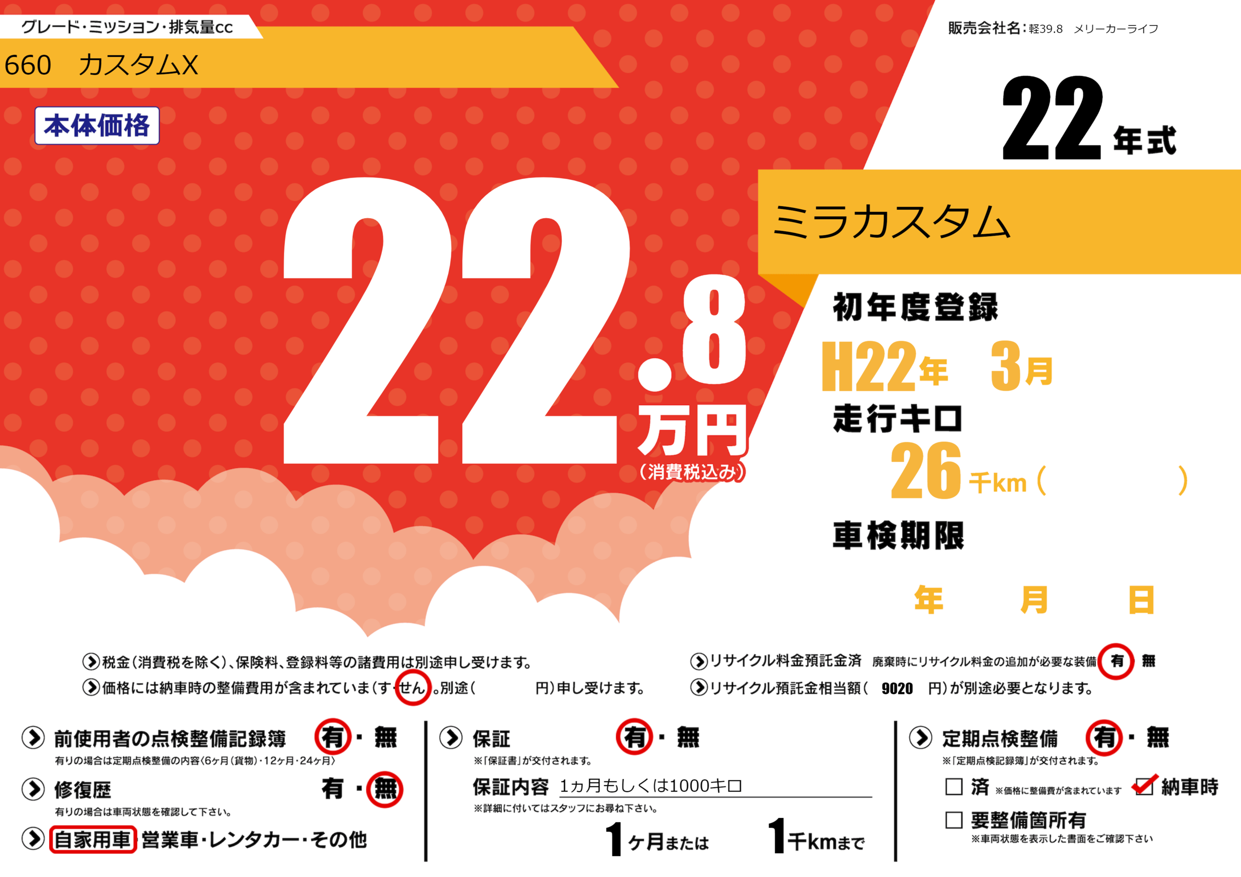 | 初年度登録 | H22年3月 | ||