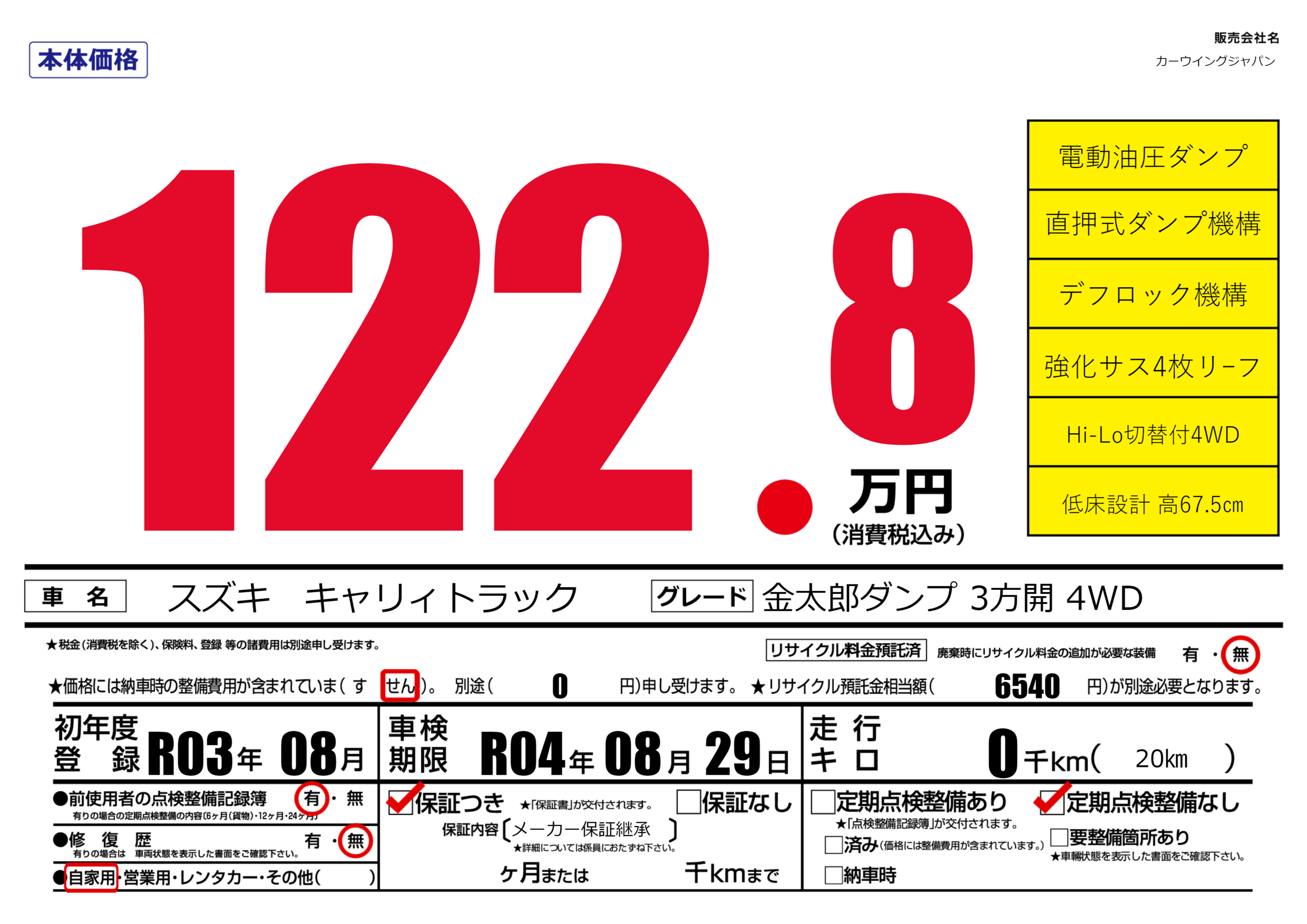 保証付き 保証内容(メーカー保証継承) ---ヶ月または()千kmまで |
