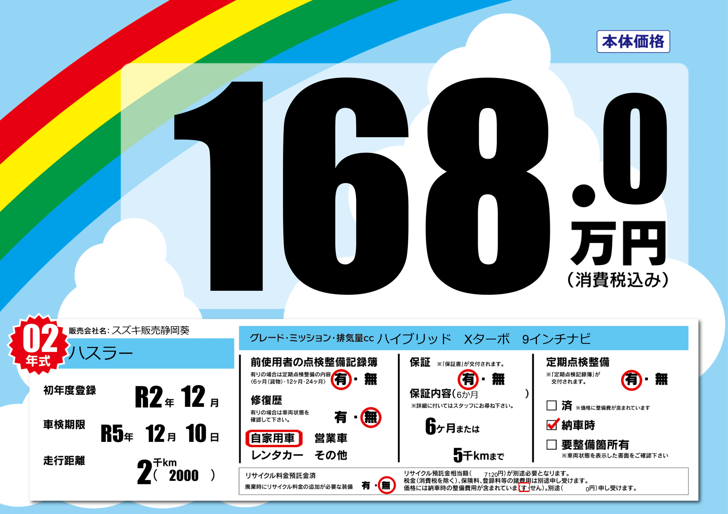 | 車名 | ハスラー | グレード ミッション 排気量 |