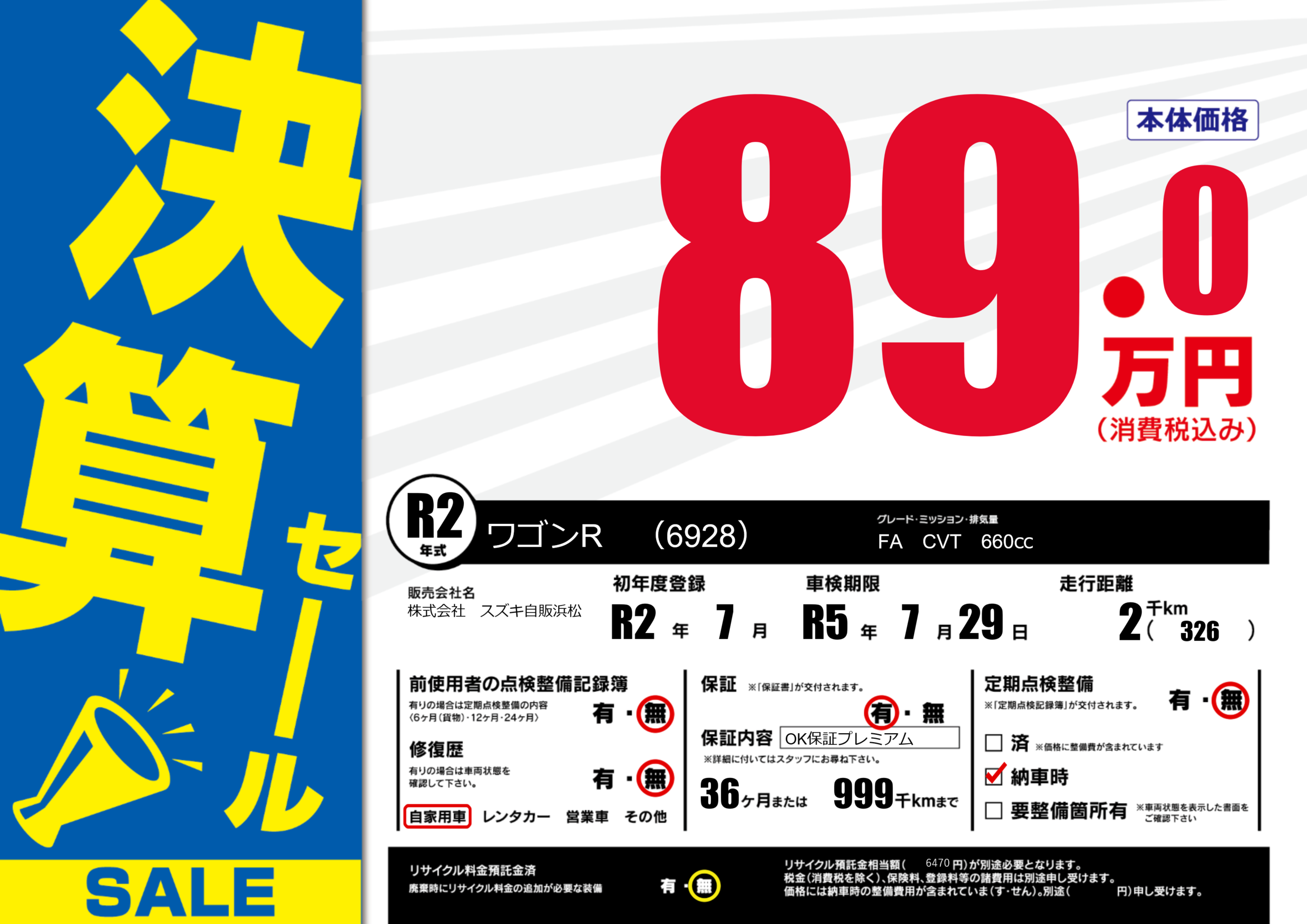 | 車名 | ワゴンR (6928) | グレード ミッション 排気量 |