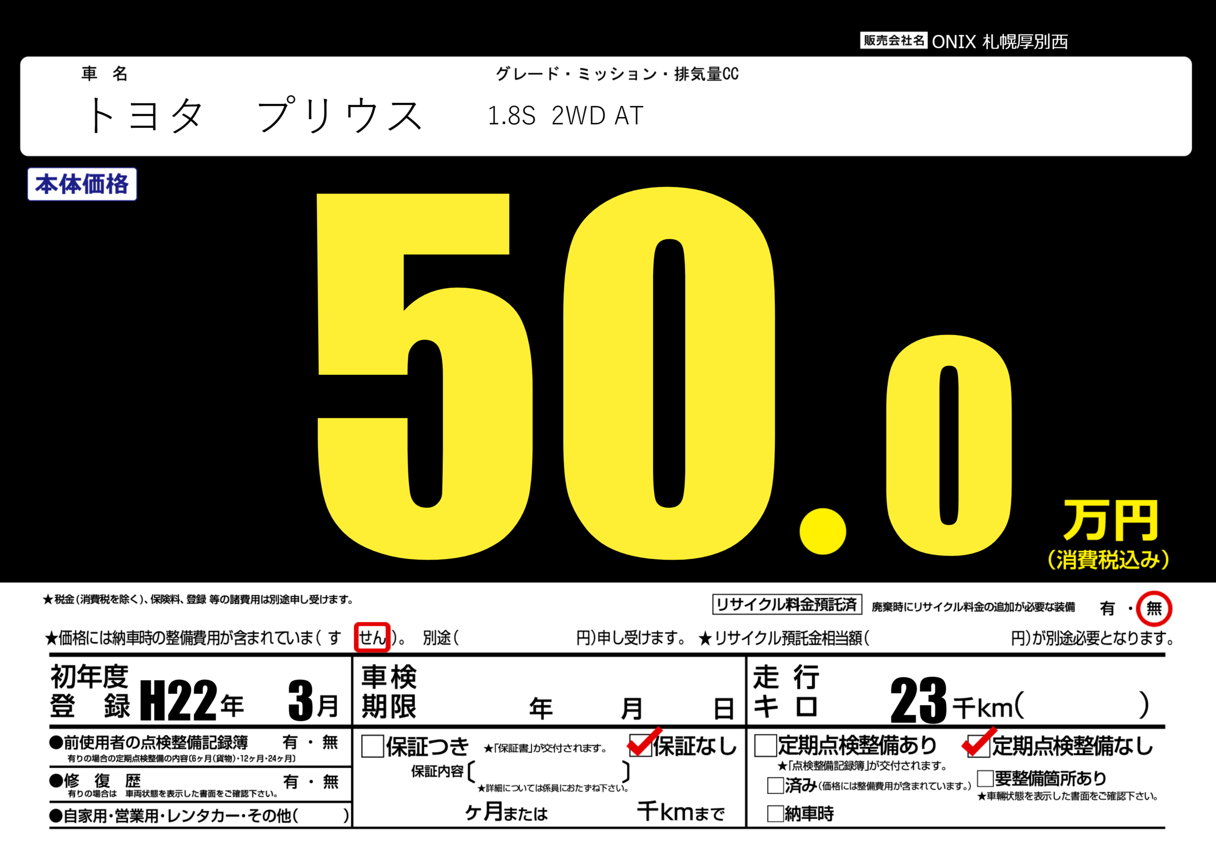 | 車名 | トヨタ プリウス | グレード ミッション 排気量 |