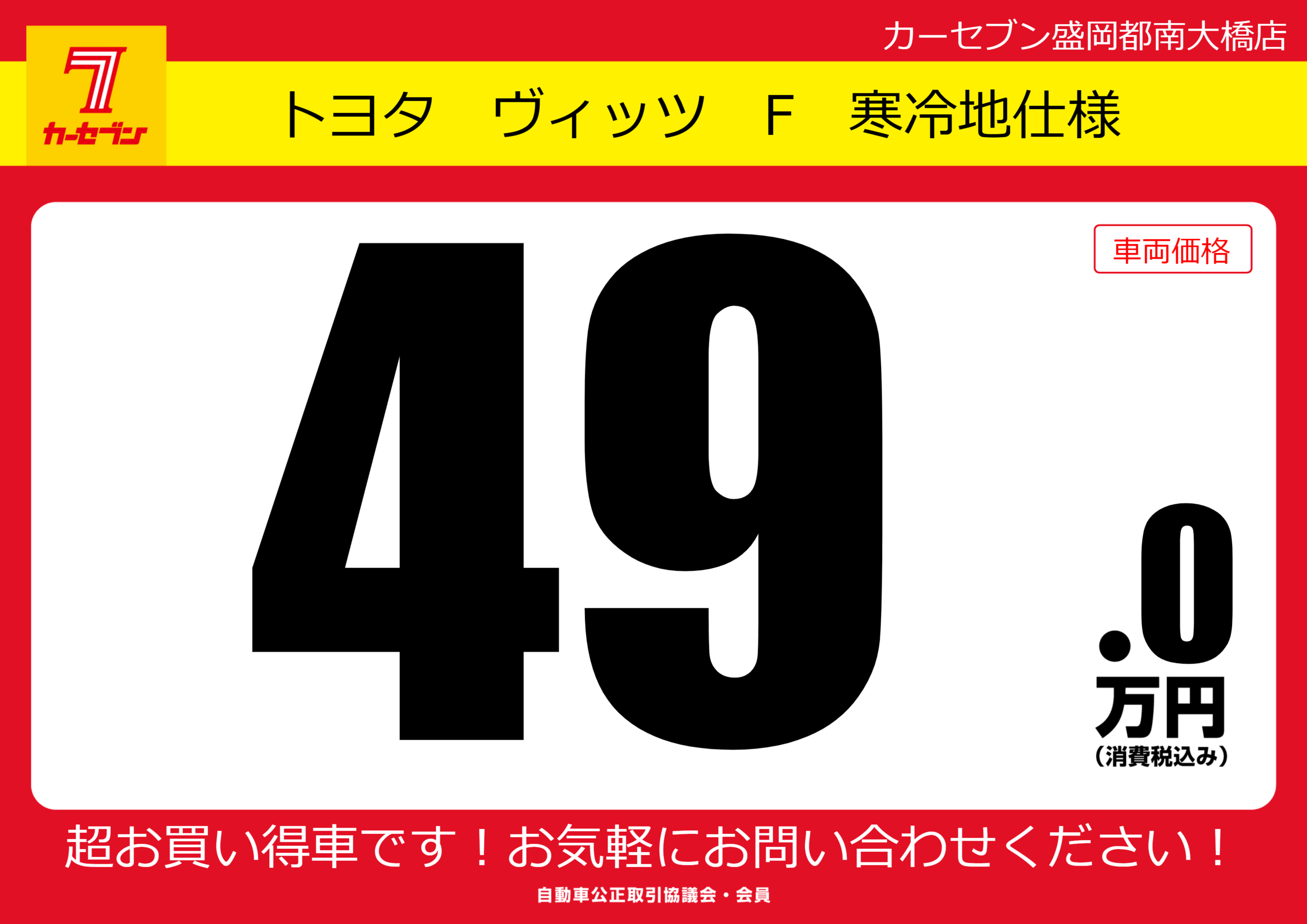 | 車名 | トヨタ ヴィッツ F 寒冷地仕様 | グレード ミッション 排気量 |