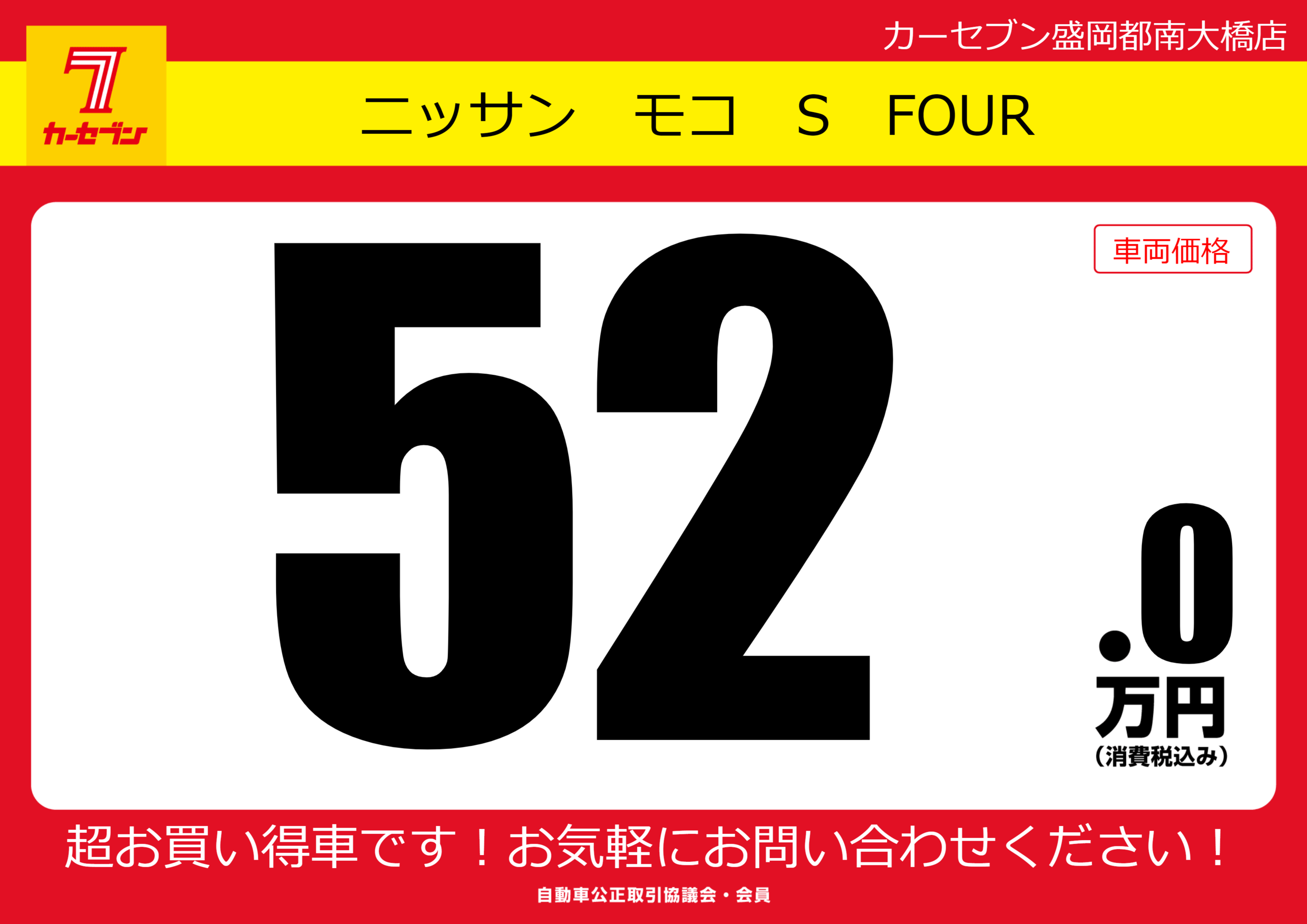 | 車名 | ニッサン モコ S FOUR | グレード ミッション 排気量 |