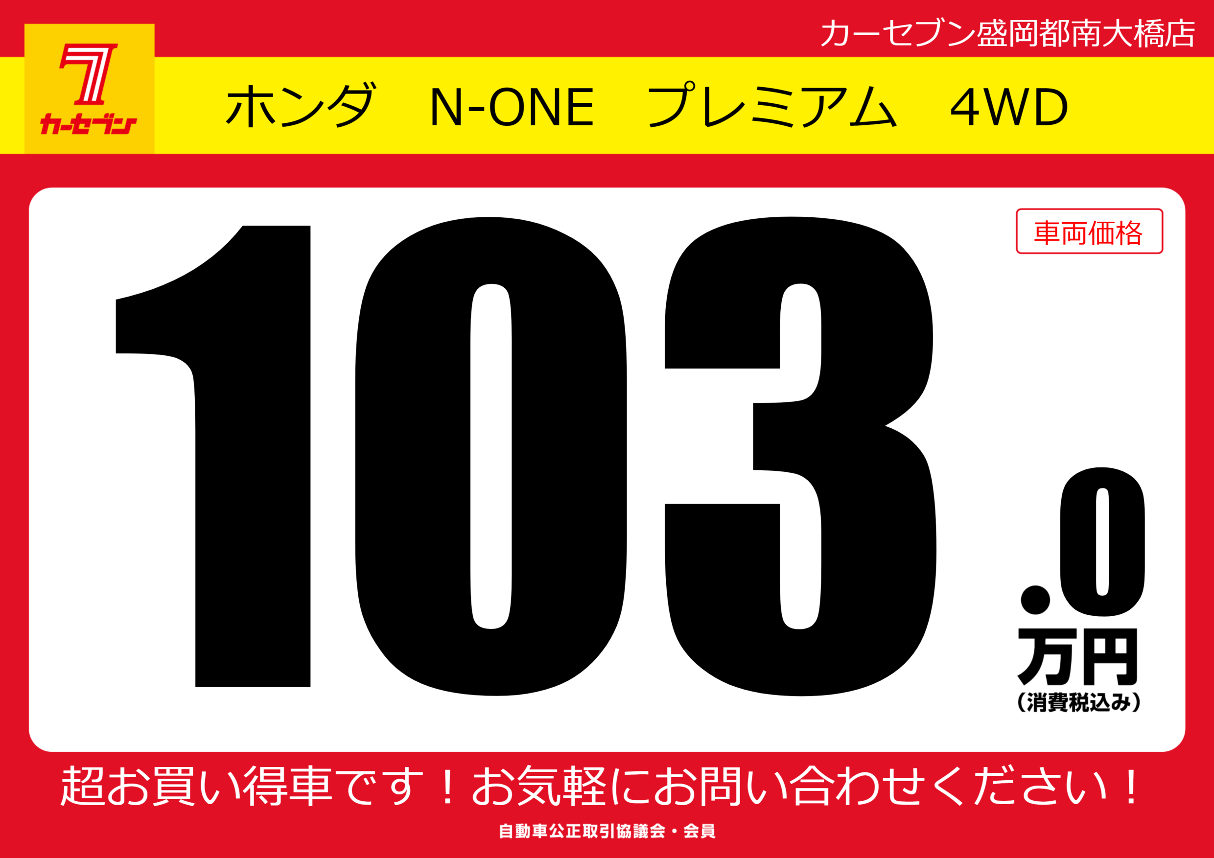 | 車名 | ホンダ N-ONE プレミアム 4WD | グレード ミッション 排気量 |