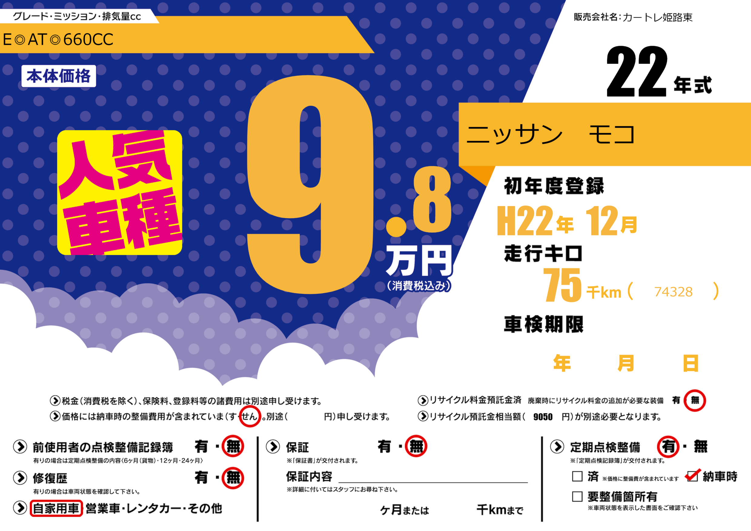 | 車名 | ニッサン モコ | グレード ミッション 排気量 |