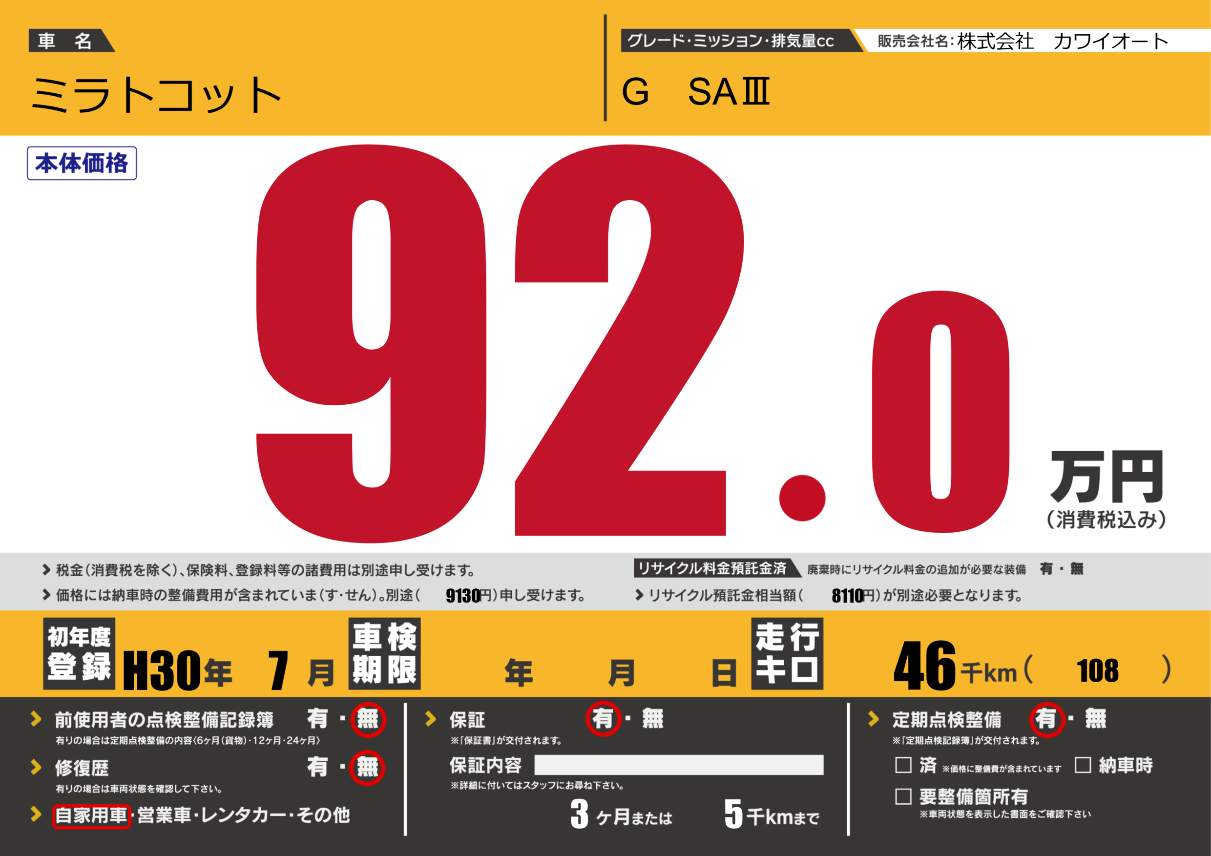 保証付き 保証内容(---) 3ヶ月または(5)千kmまで |
