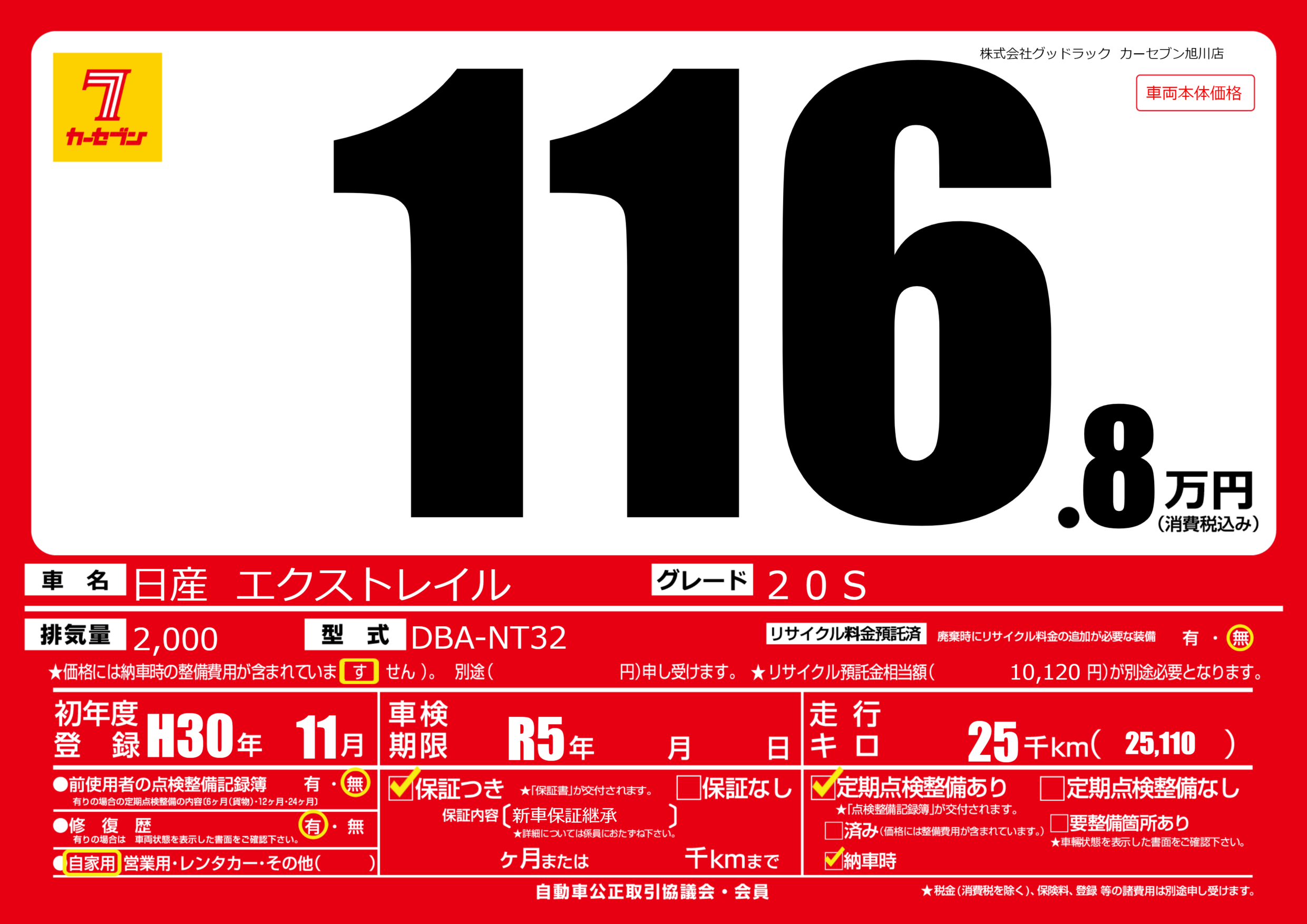 | 定期点検整備 | 定期点検整備あり 納車時あり | ||