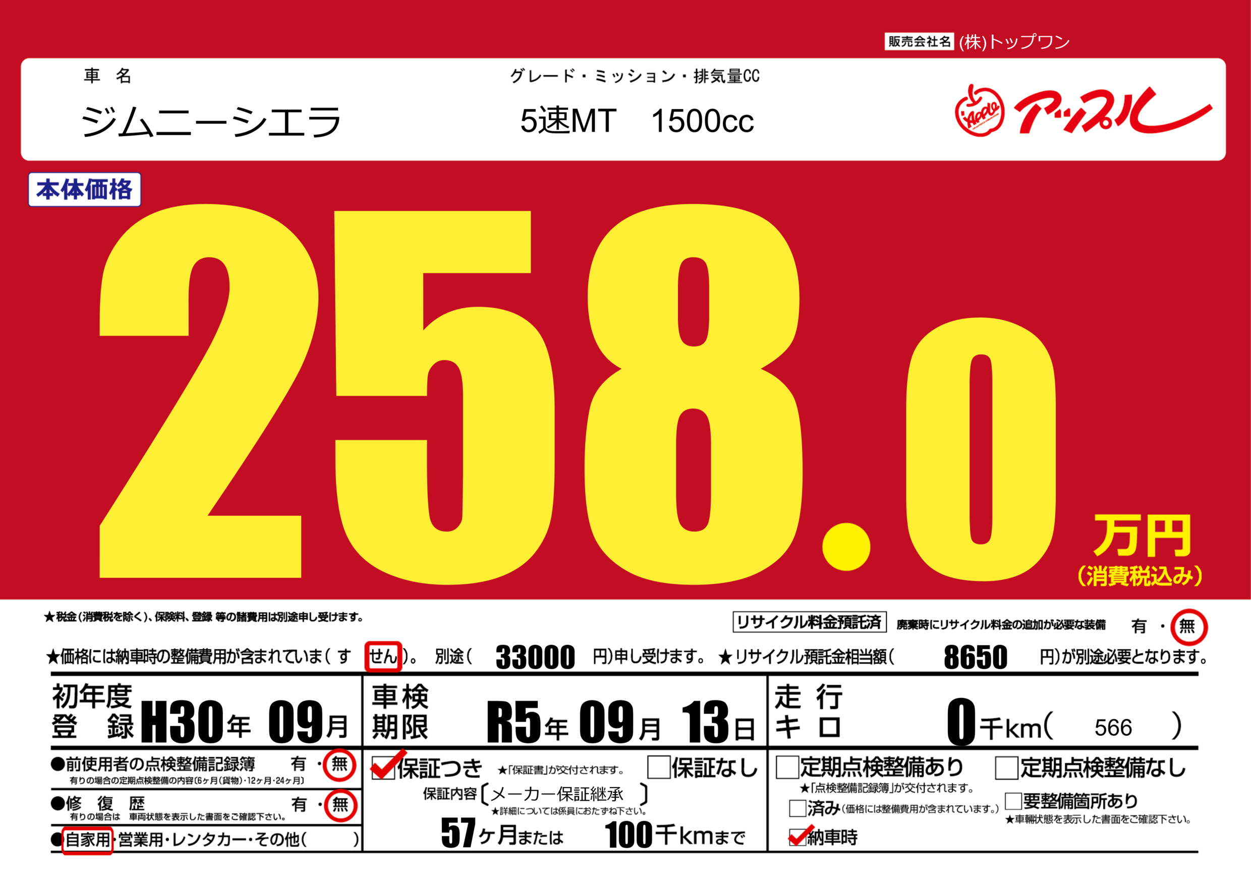 | 車名 | ジムニーシエラ | グレード ミッション 排気量 |