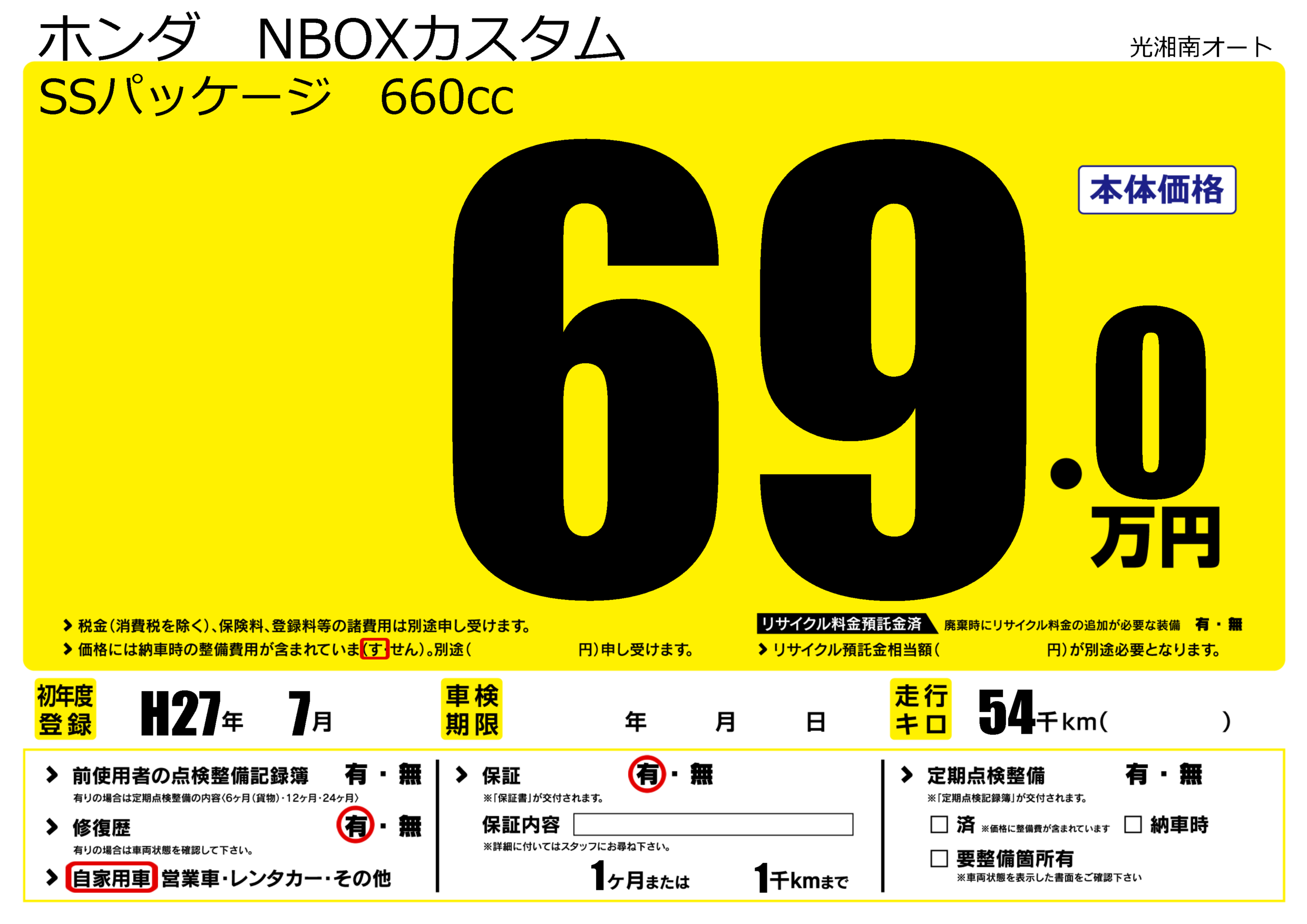 | 初年度登録 | H27年7月 | ||