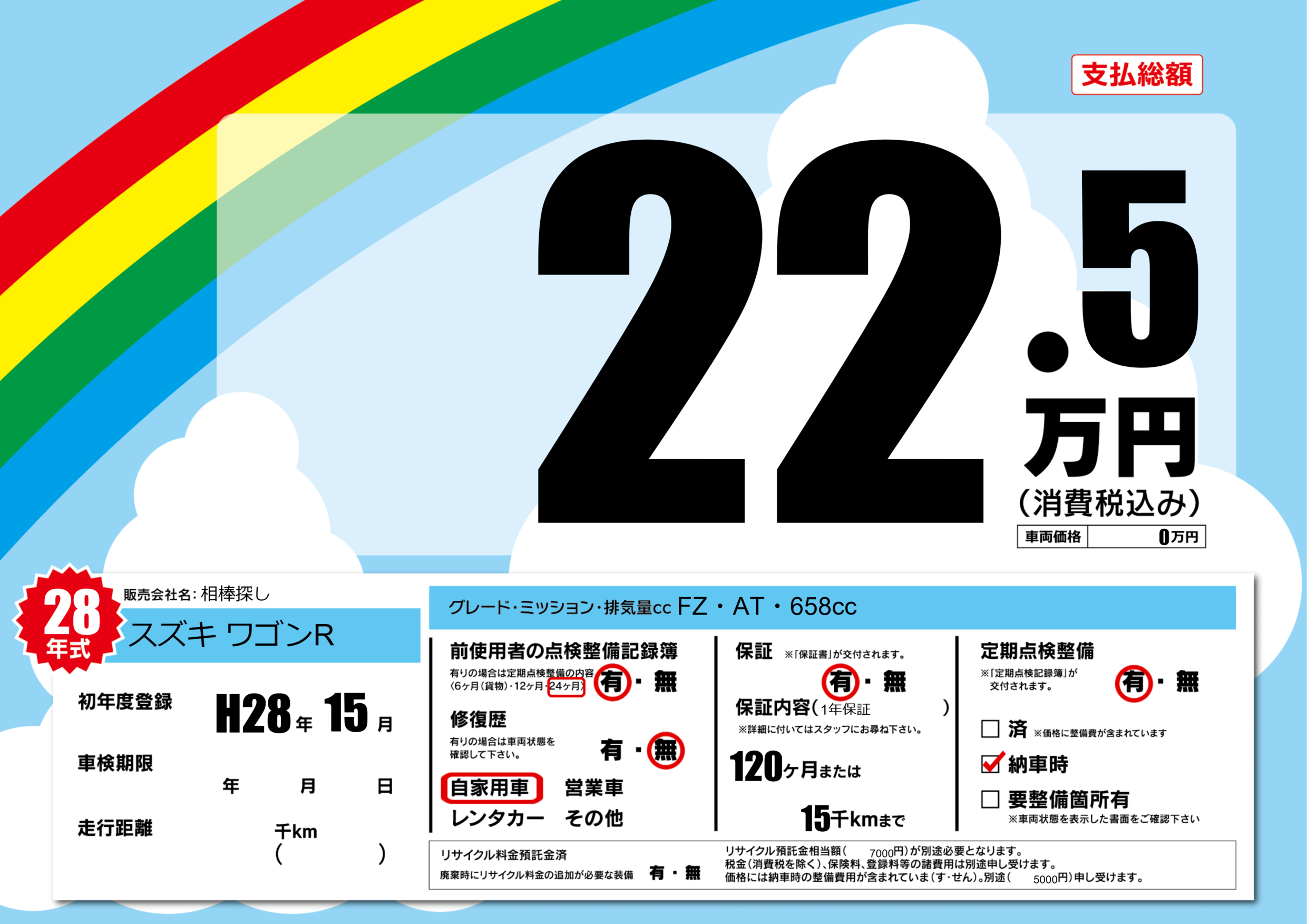 | 車名 | スズキ ワゴンR | グレード ミッション 排気量 |