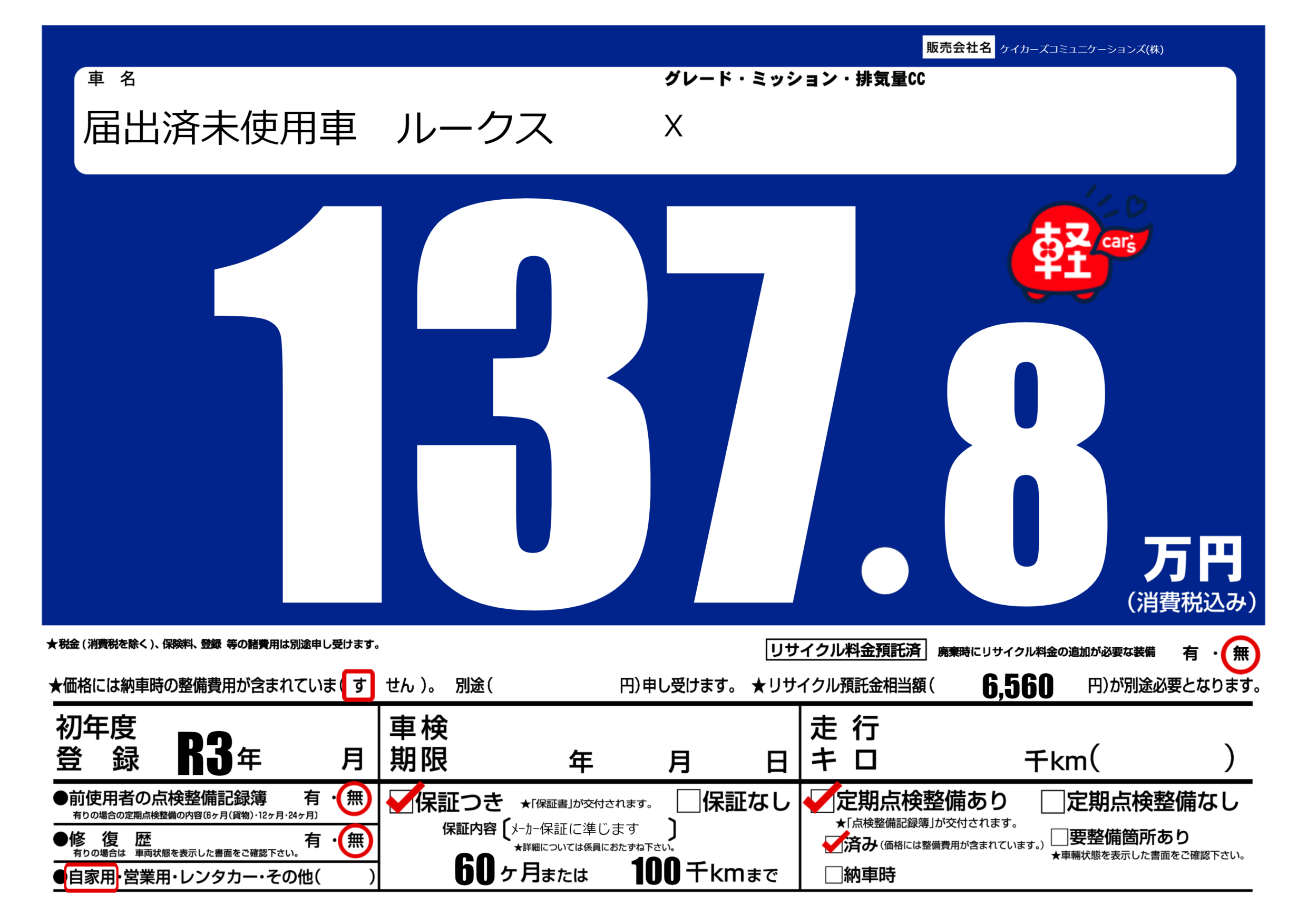 | 定期点検整備 | 定期点検整備あり 定期点検整備済み | ||