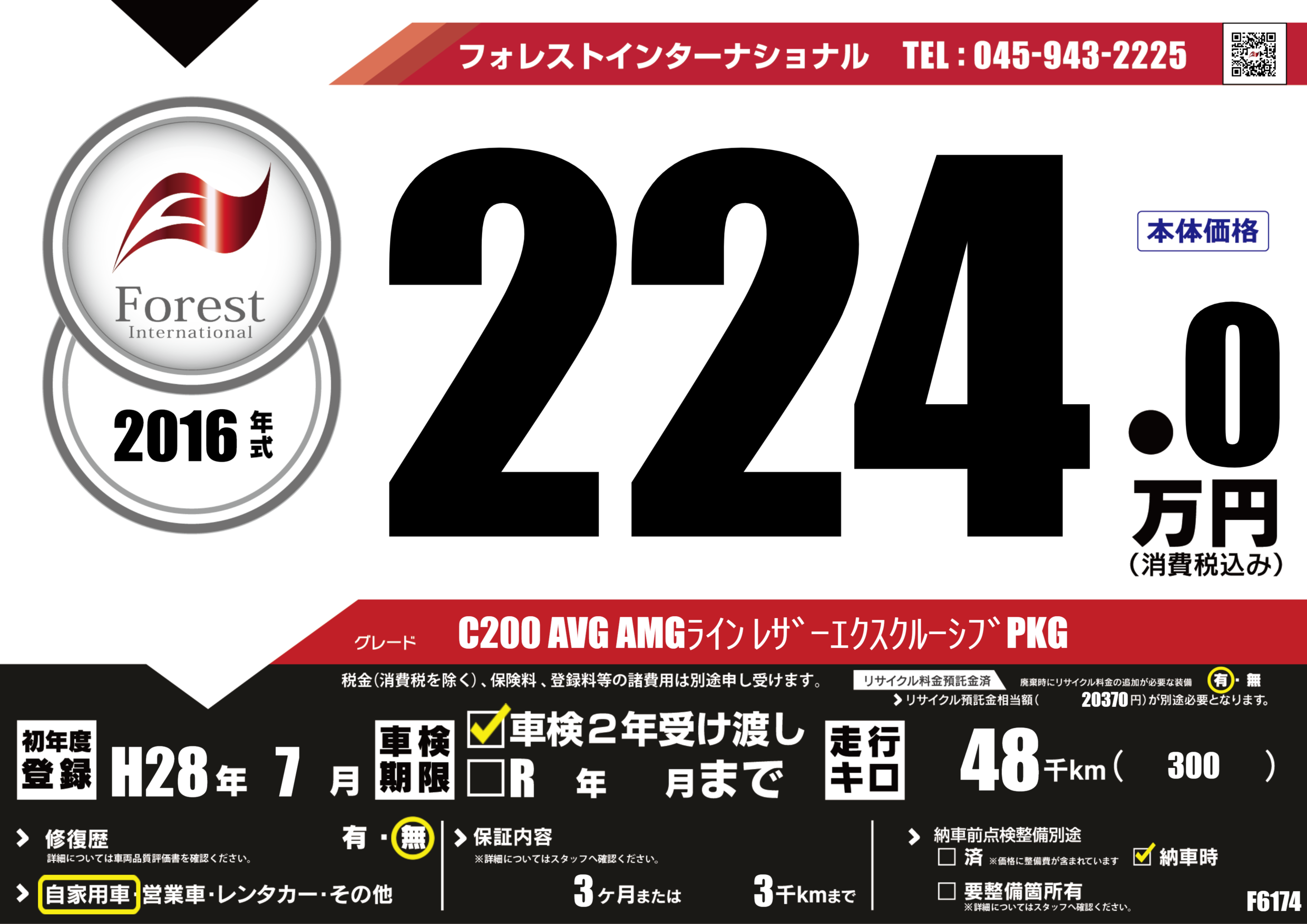 | 走行キロ | 4.8万km | 初年度登録 | H28年7月 |