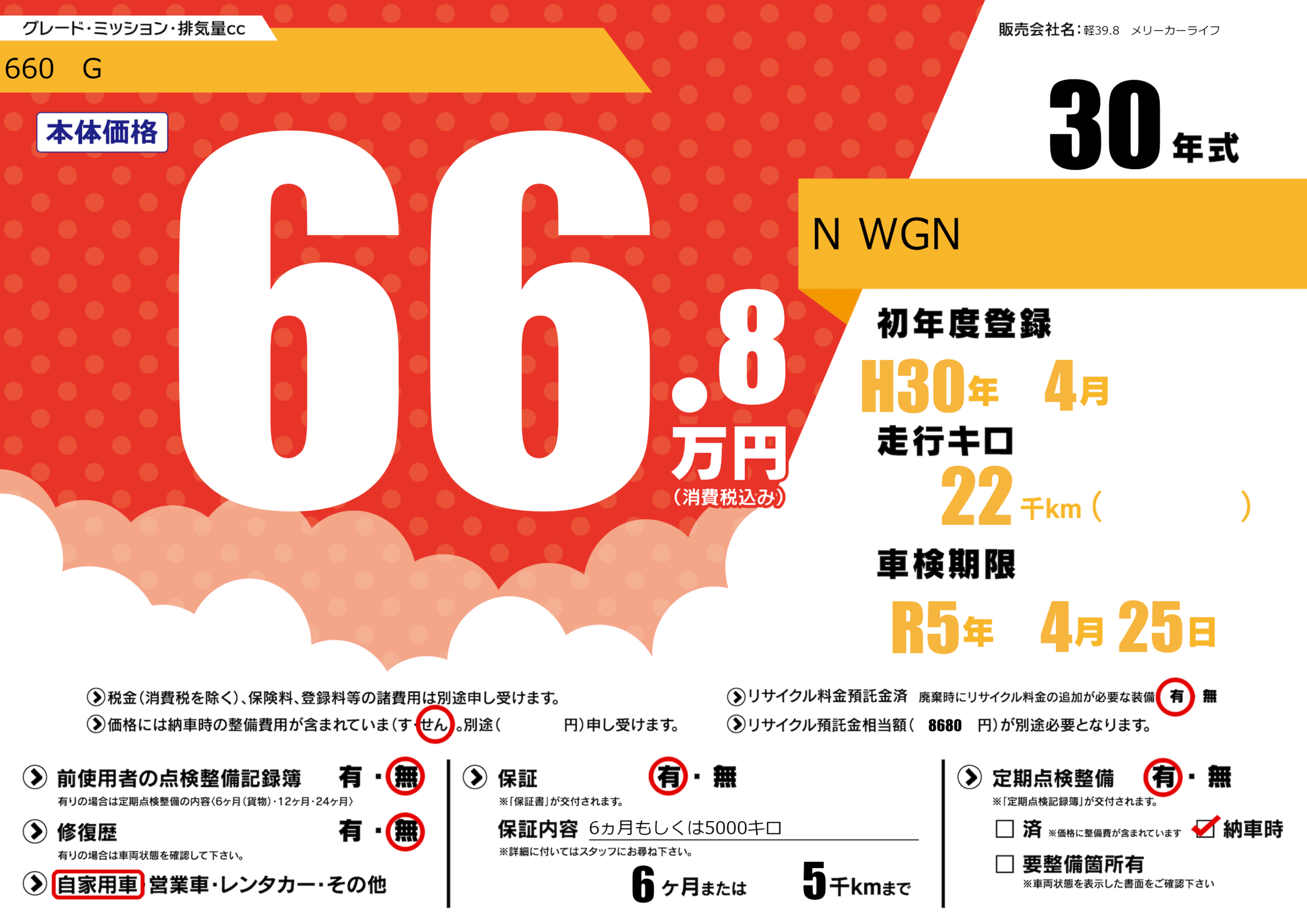 なし | 車検制限 | R5年4月25月 |