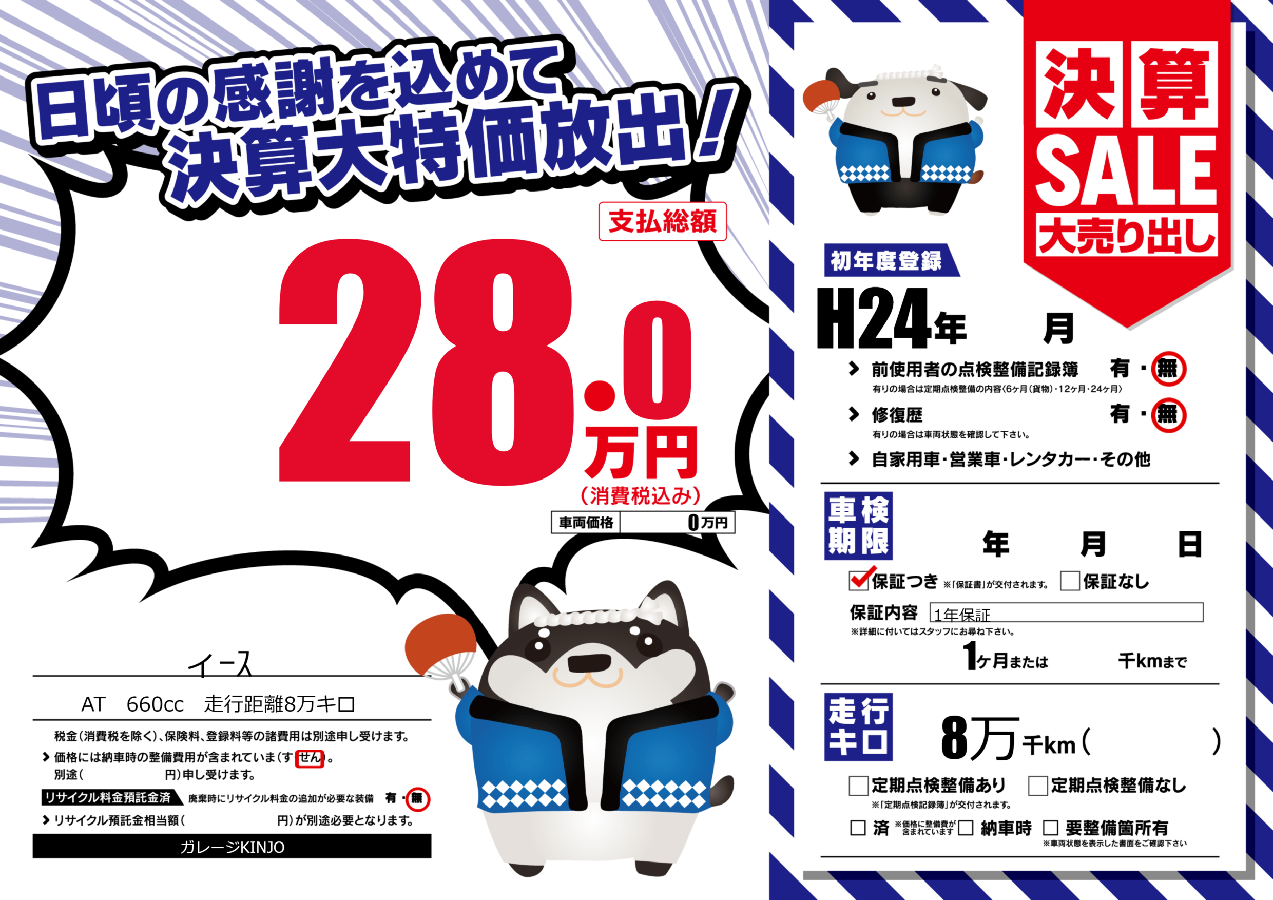 保証付き 保証内容(1年保証) 1ヶ月または()千kmまで |