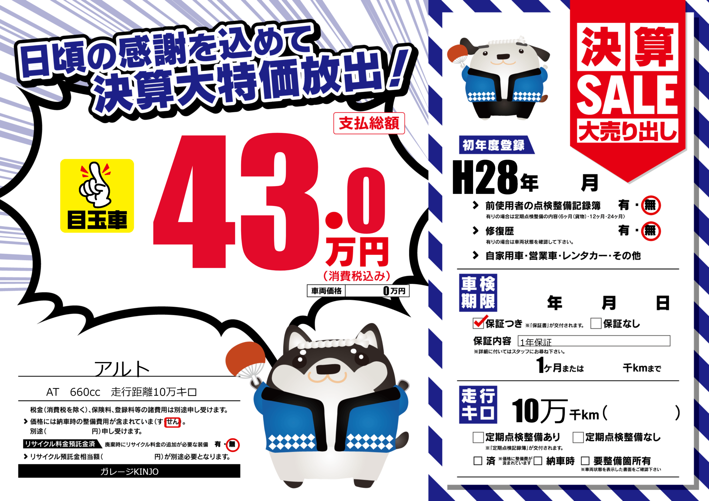 保証付き 保証内容(1年保証) 1ヶ月または()千kmまで |