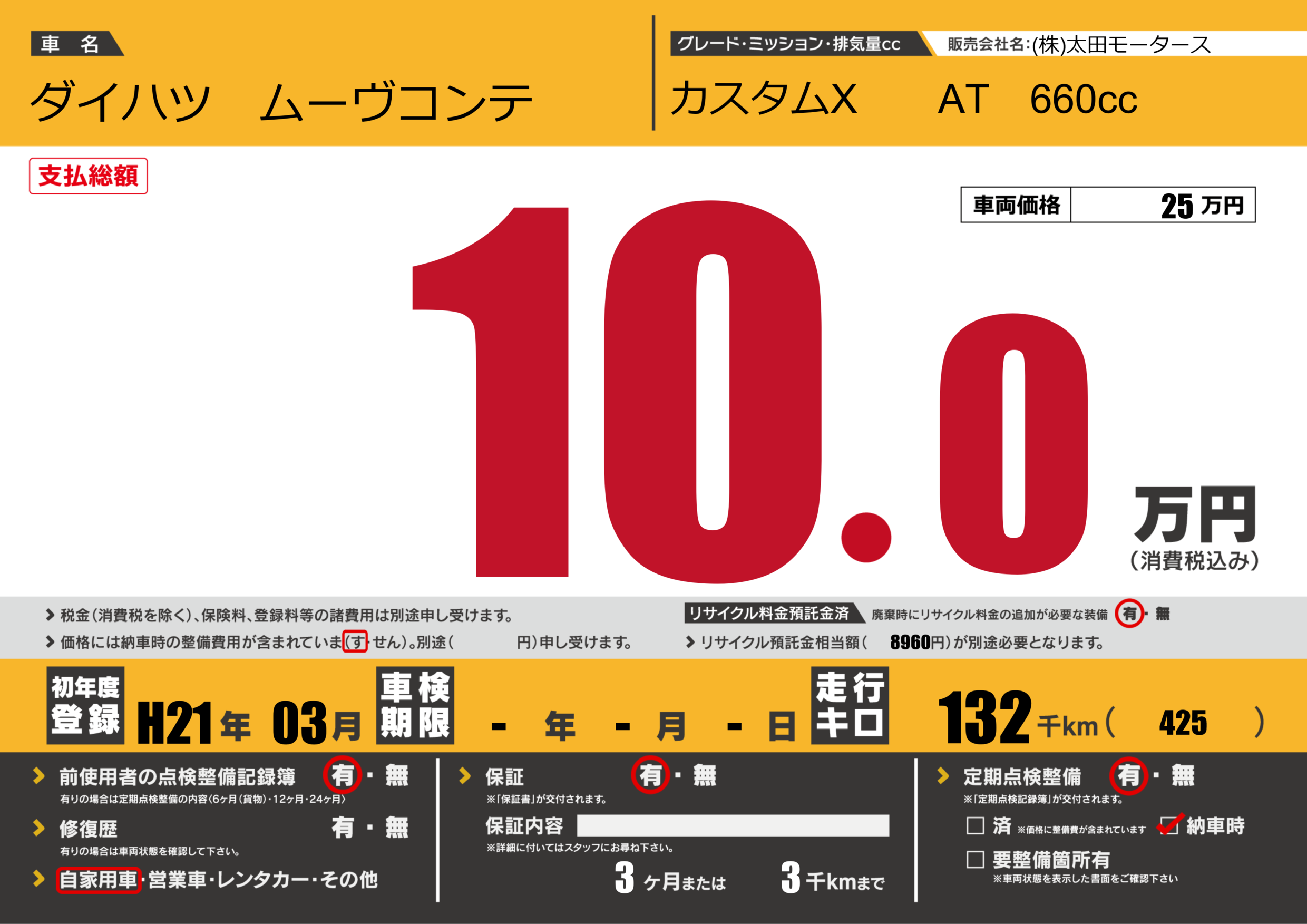 保証付き 保証内容(---) 3ヶ月または(3)千kmまで |