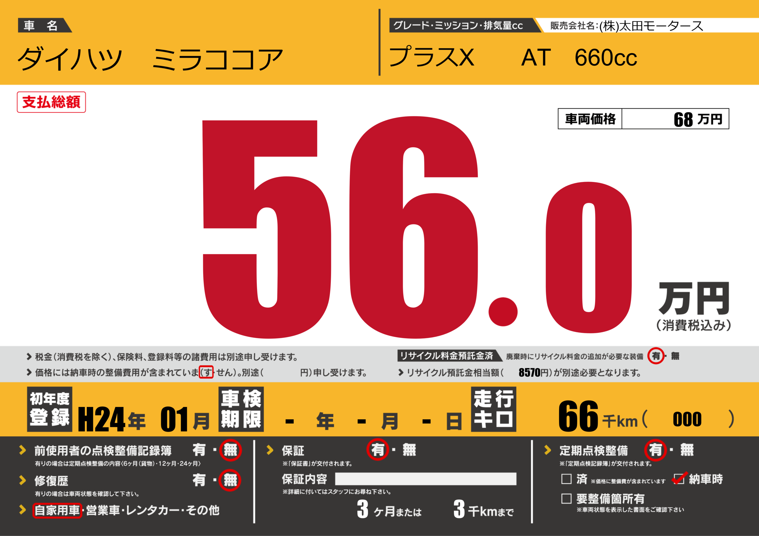 | 走行キロ | 6.6万km | 初年度登録 | H24年01月 |