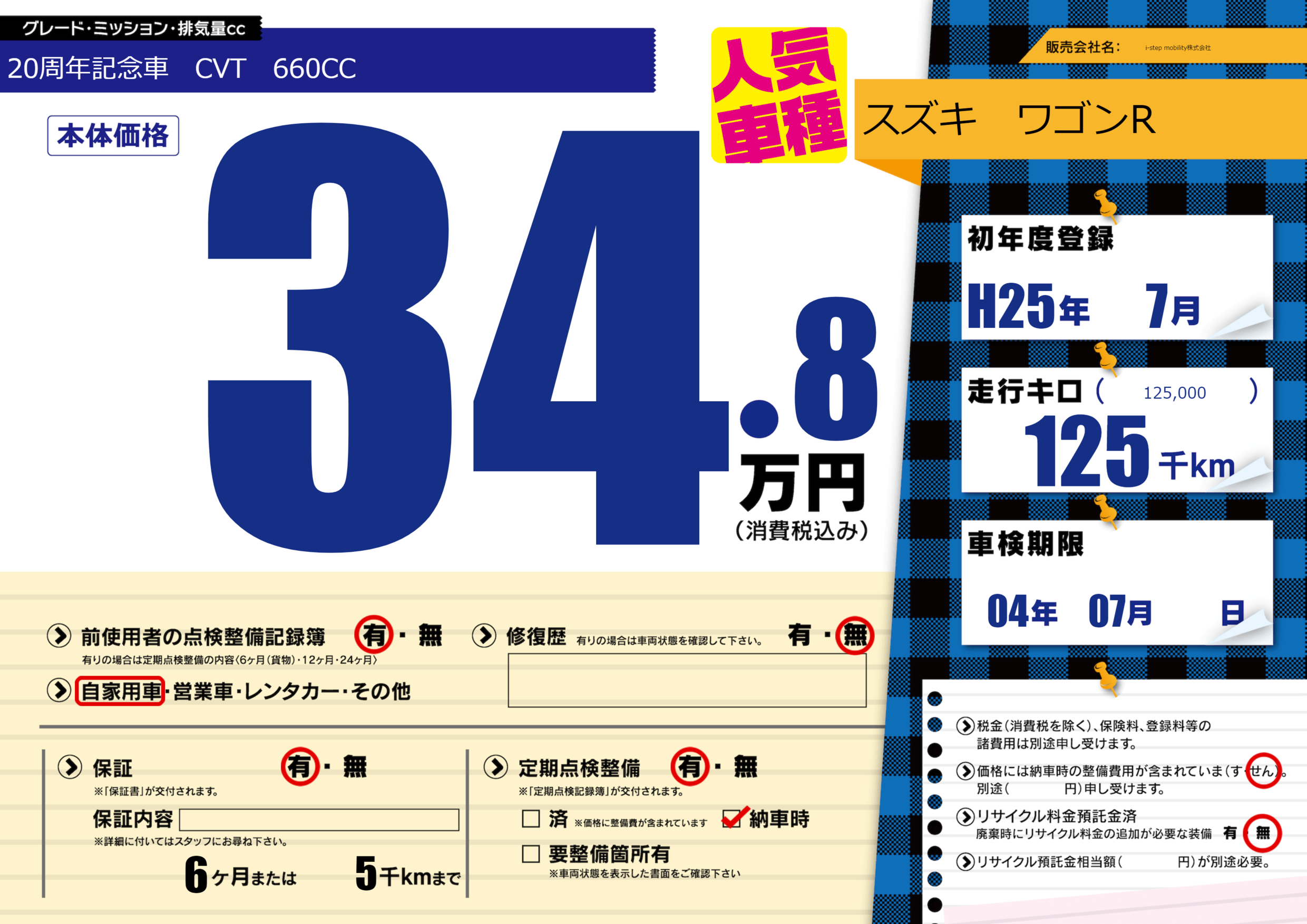 保証付き 保証内容(---) 6ヶ月または(5)千kmまで |