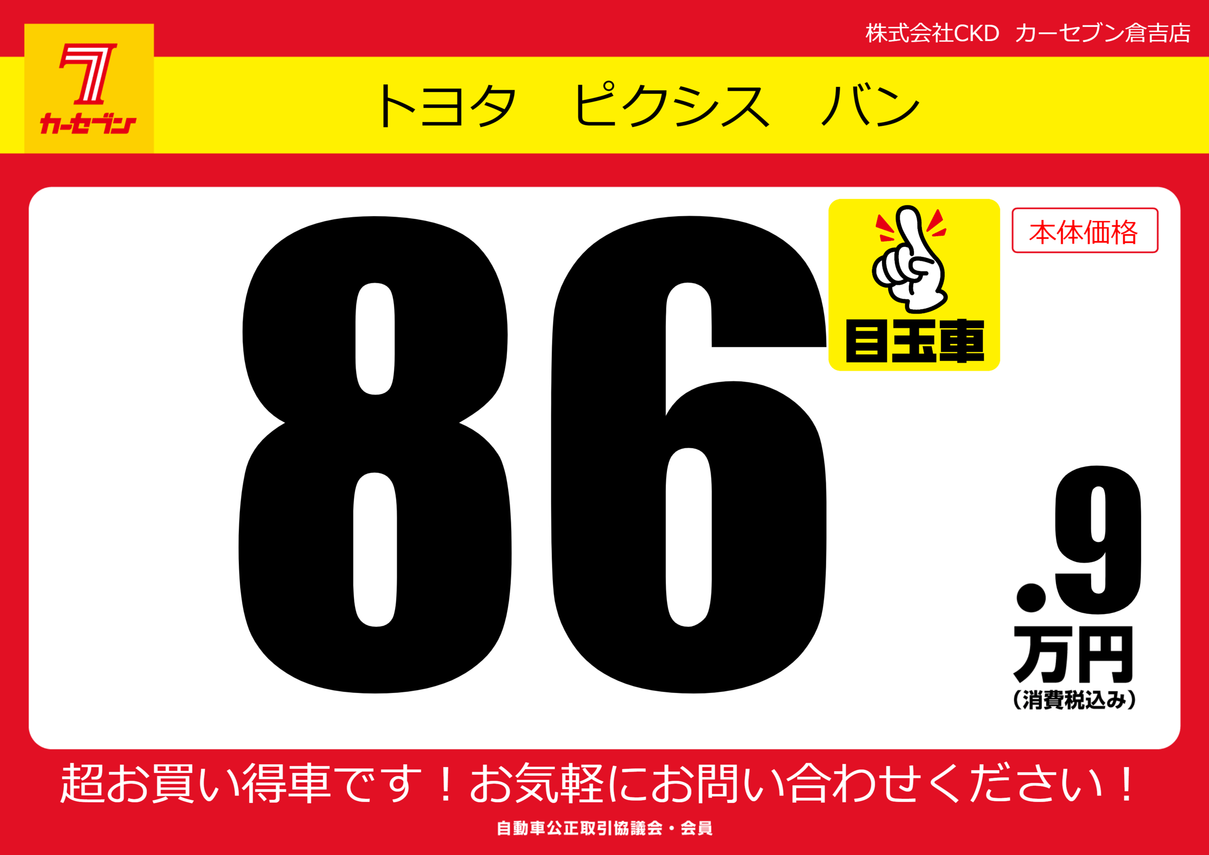 | 車名 | トヨタ ピクシス バン | グレード ミッション 排気量 |