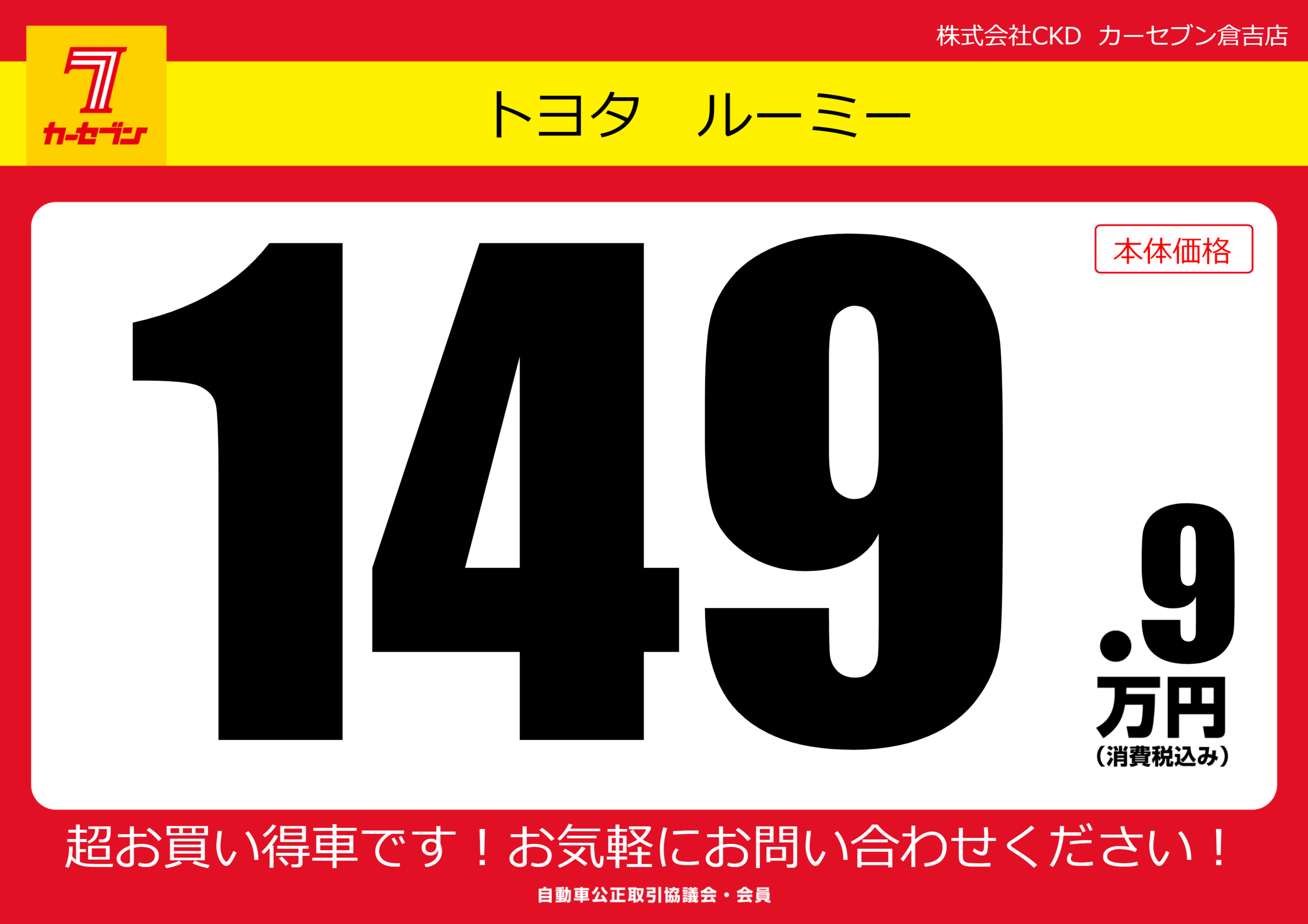 | 車名 | トヨタ ルーミー | グレード ミッション 排気量 |