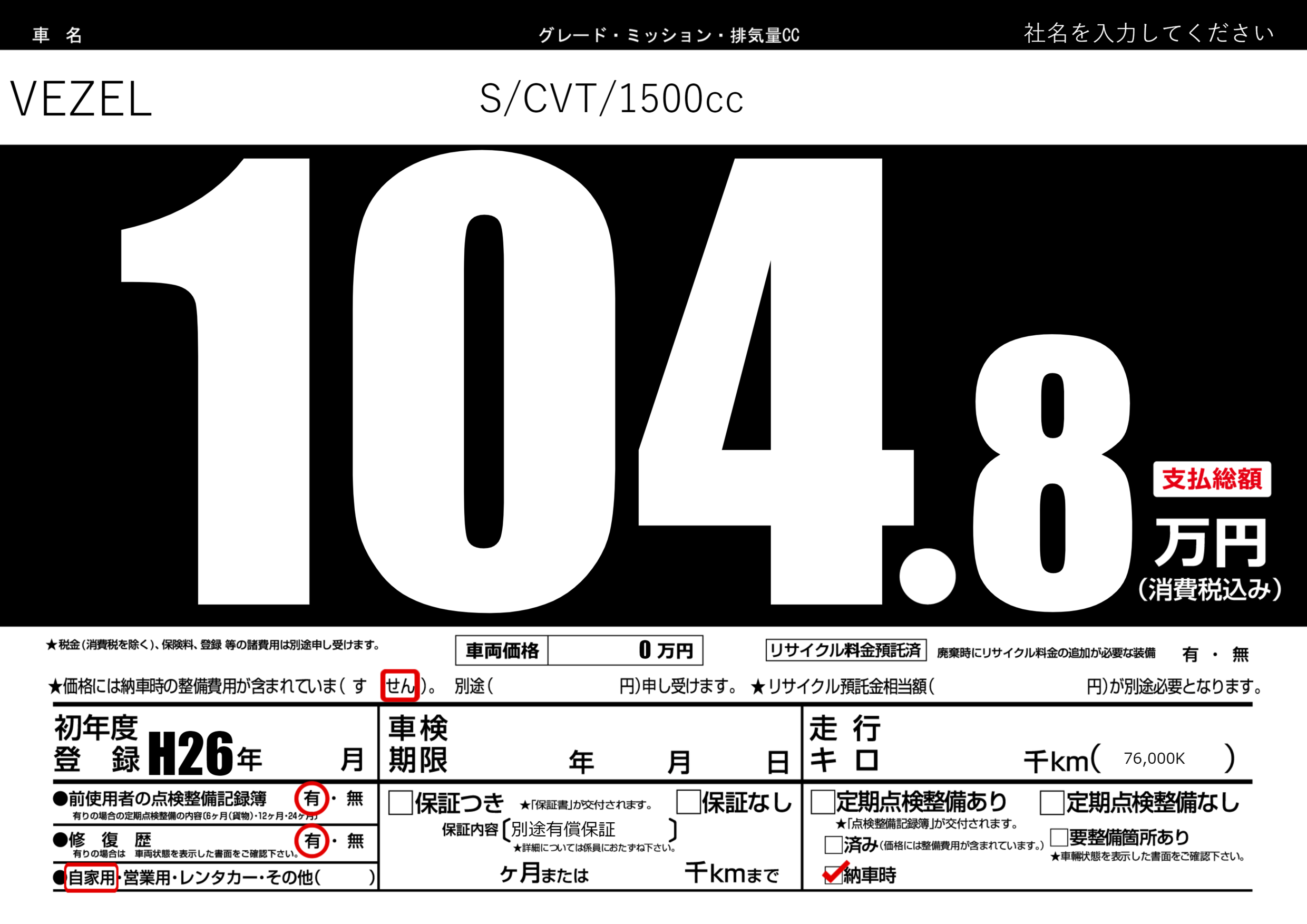 保証なし 保証内容(別途有償保証) ---ヶ月または()千kmまで |