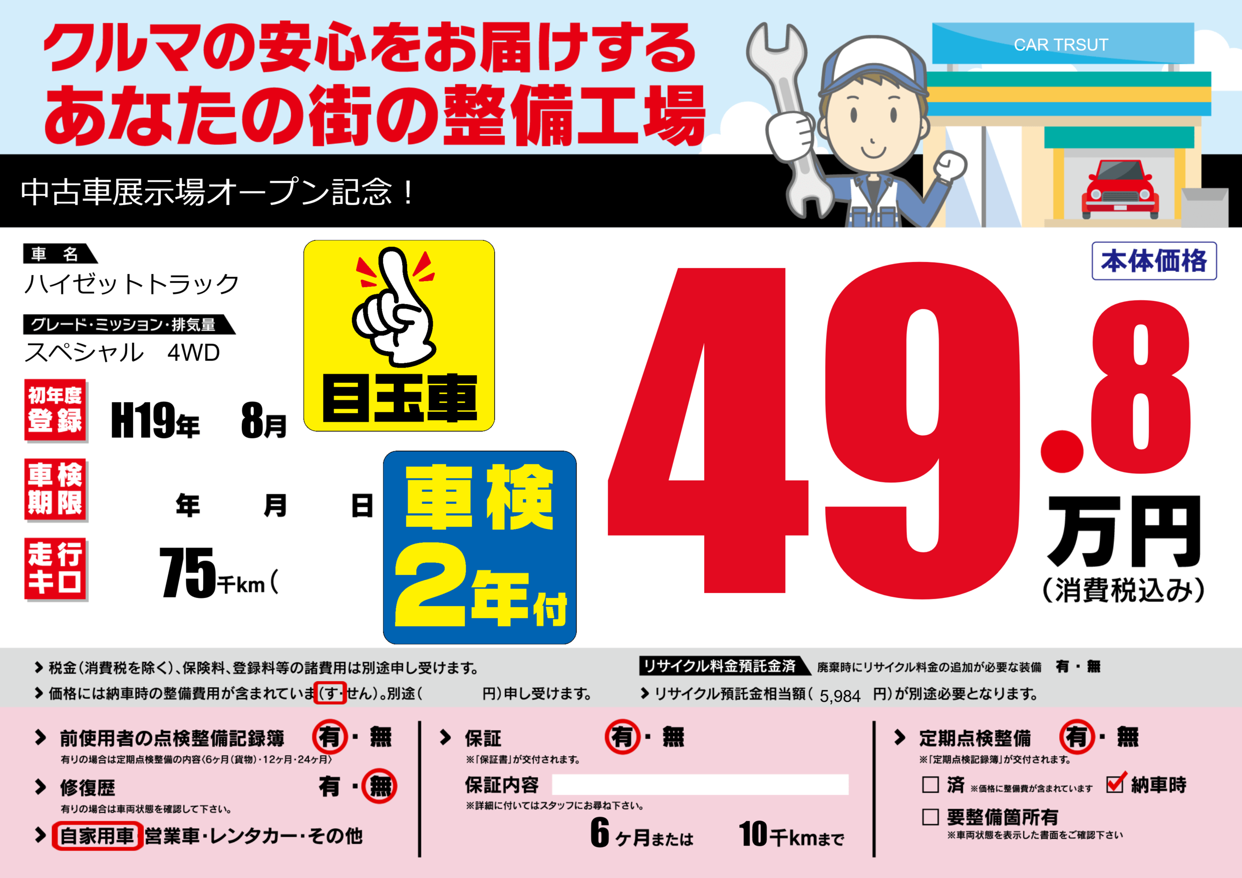 | 車名 | ハイゼットトラック | グレード ミッション 排気量 |